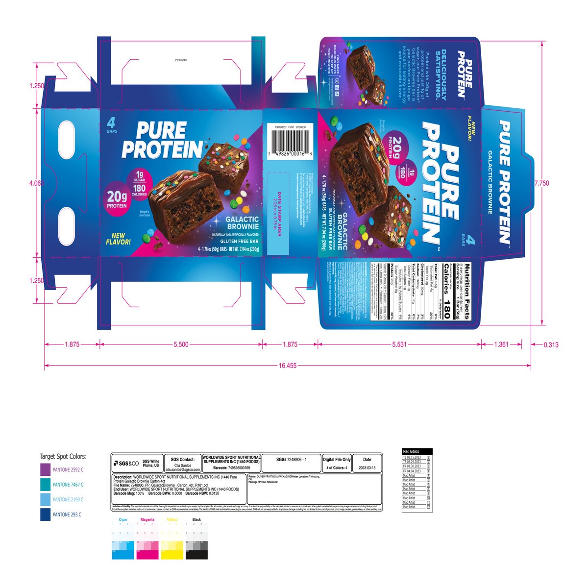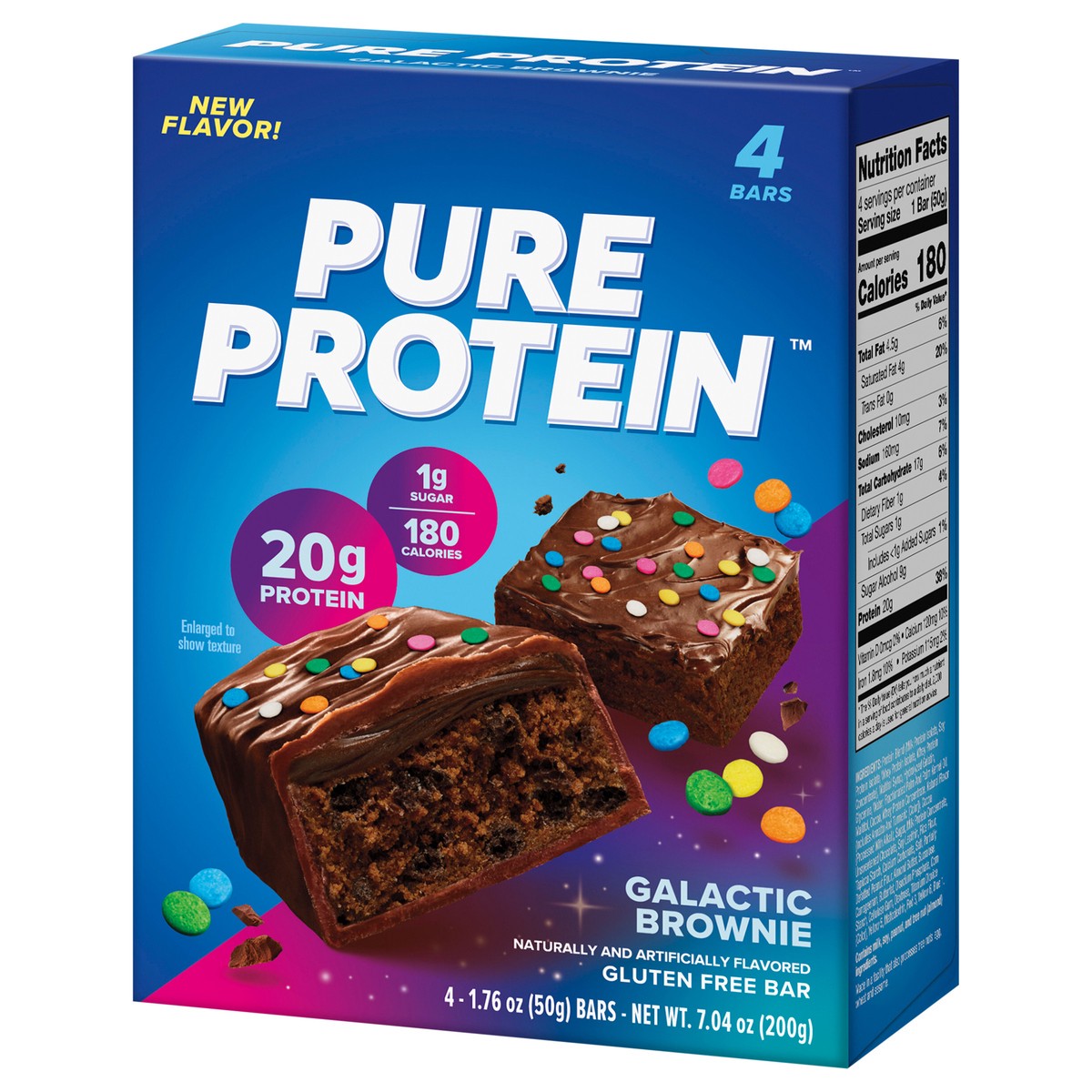 Pure Protein Bars, Galactic Brownie, 20g Protein, 1.76 oz, 4 Ct - 4 ct