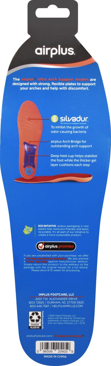 The Airplus Ultra Arch support Insoles are designed with strong, flexible plates to support your arches and help with discomfort. Deep heel cup helps stabilize the foot while the thicker gel layer cus…