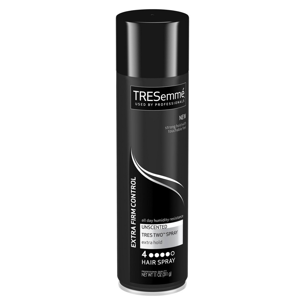 Want an extra firm hold that's not stiff or sticky? Hold the look you desire with salon-quality TRESemmé Unscented Extra Hold Hairspray. This anti-frizz holding spray was designed to protect against h…
