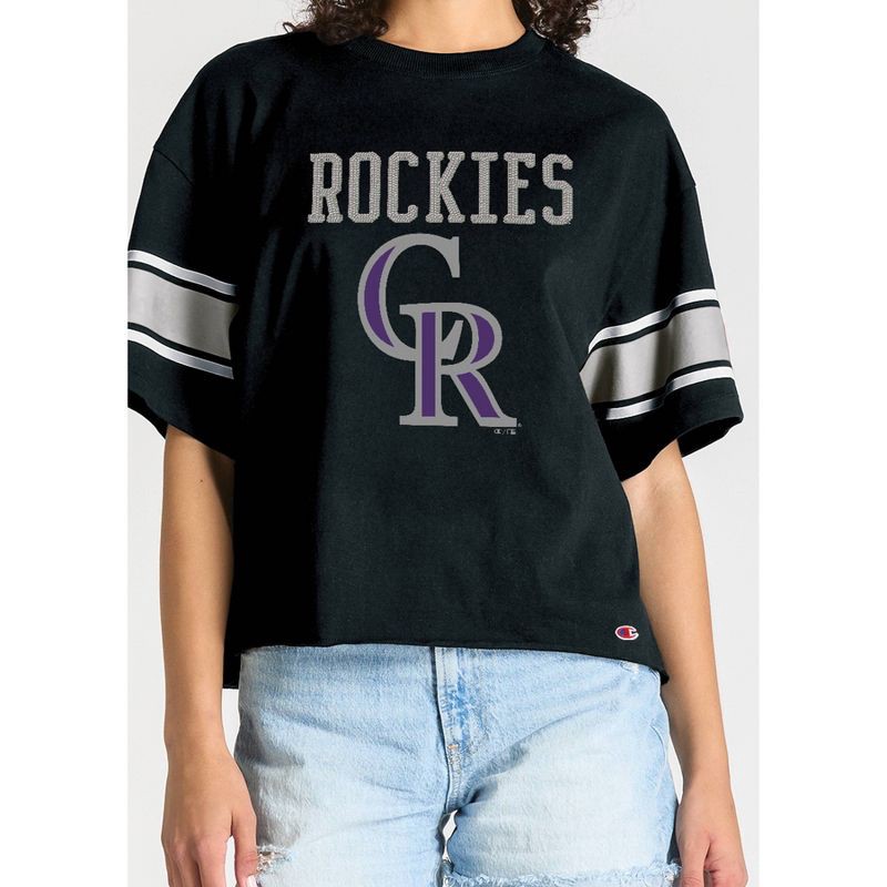 slide 1 of 5, MLB Colorado Rockies Women's Champion Sequin Print T-Shirt - L, 1 ct