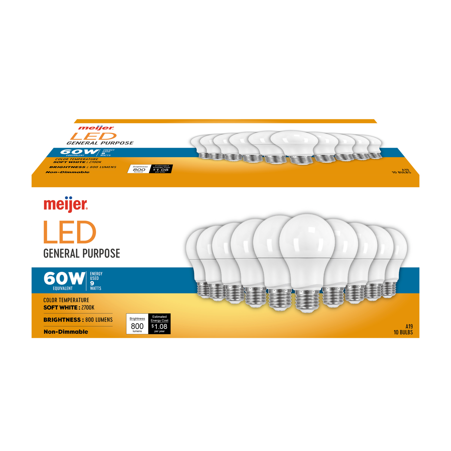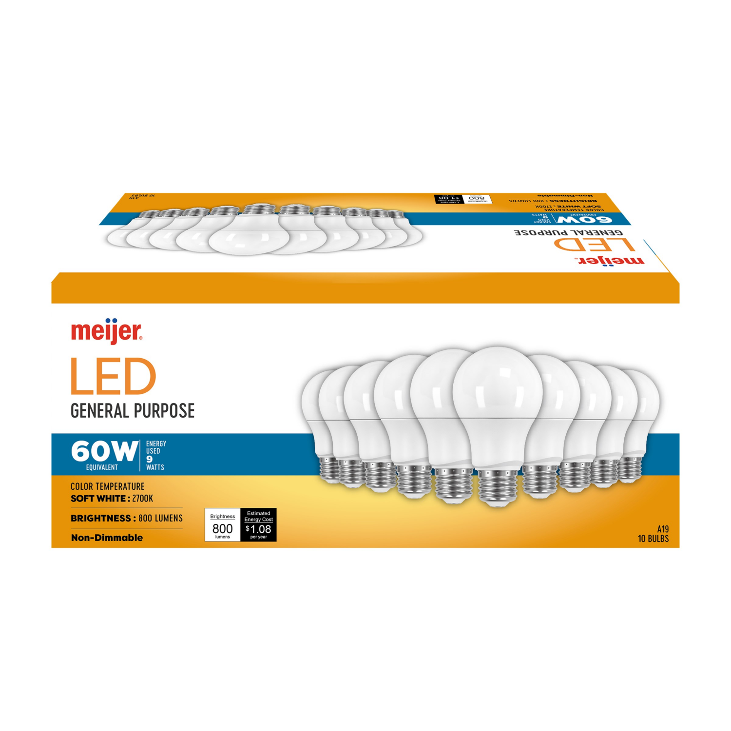 Meijer Led 9w A19 Soft White 60w Replacement Bulb, 10 Ct