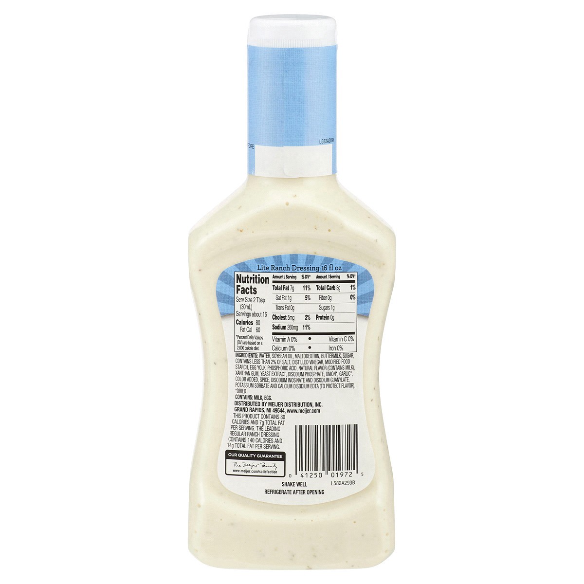 Enjoy your favorite Midwestern classic without worrying about your diet with Meijer Lite Ranch Dressing. Irresistably creamy and rich, this thick dressing will make your salad the star of the table. W…