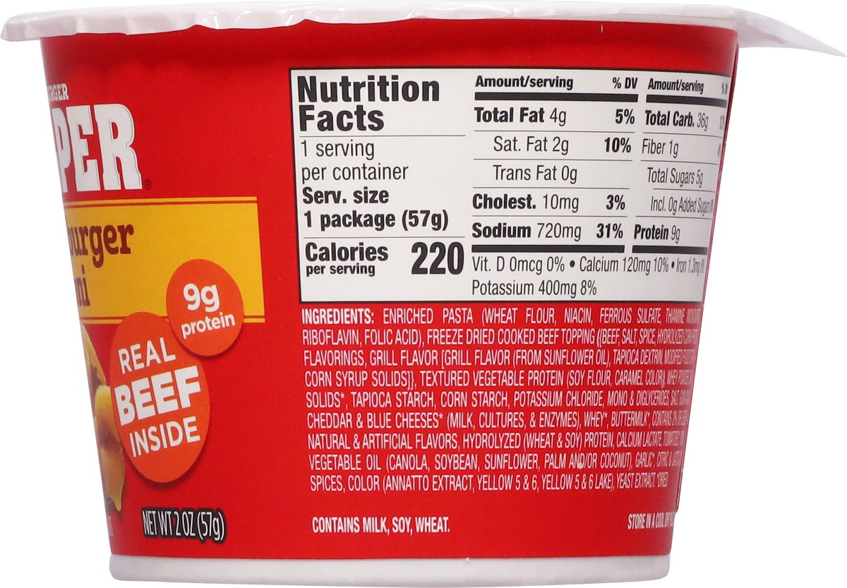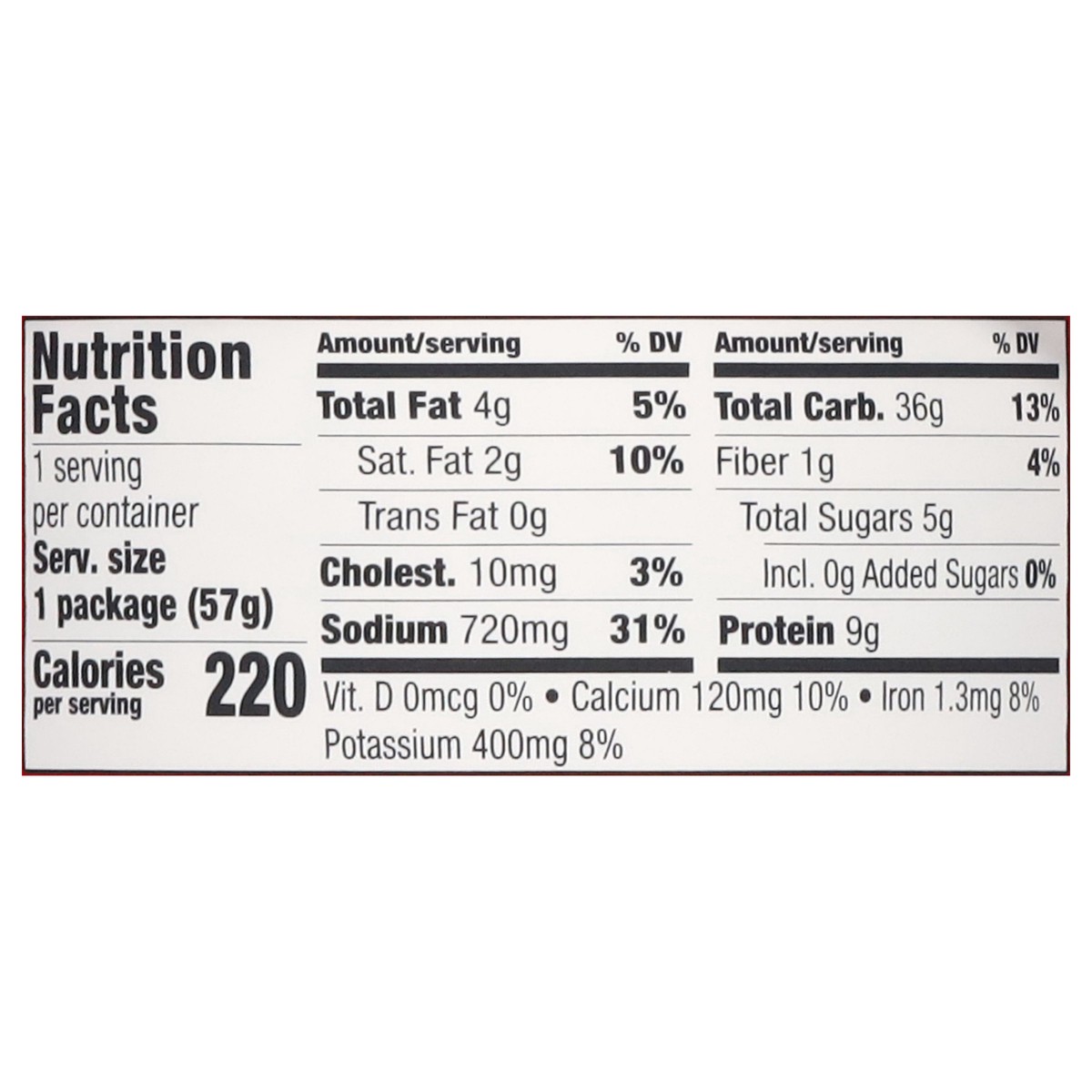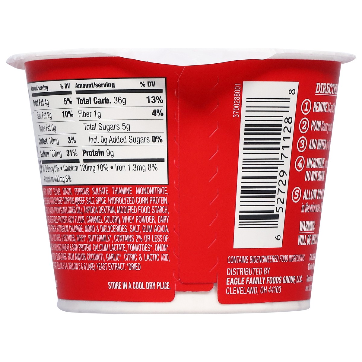 Enriched Pasta (Wheat Flour, Niacin, Ferrous Sulfate, Thiamine Mononitrate, Riboflavin, Folic Acid), Freeze Dried Cooked Beef Topping ((Beef, Salt, Spice, Hydrolyzed Corn Protein, Flavorings, Grill Fl…