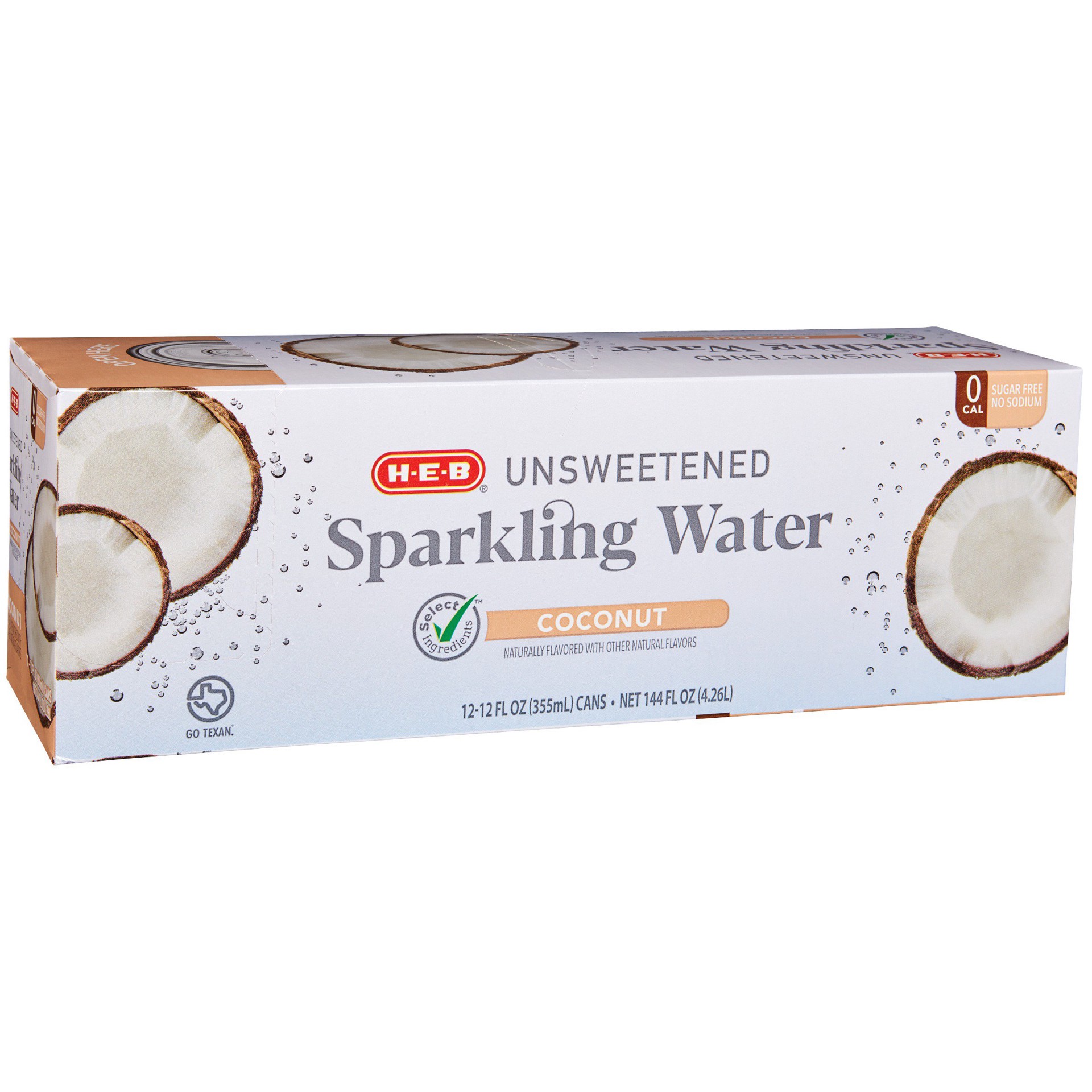Mix up your usual drink choice by trying H-E-B unsweetened coconut sparkling water. Fizzy and full of natural coconut flavor, it has no calories, sodium, sugar or caffeine. Crack open an ice-cold can …