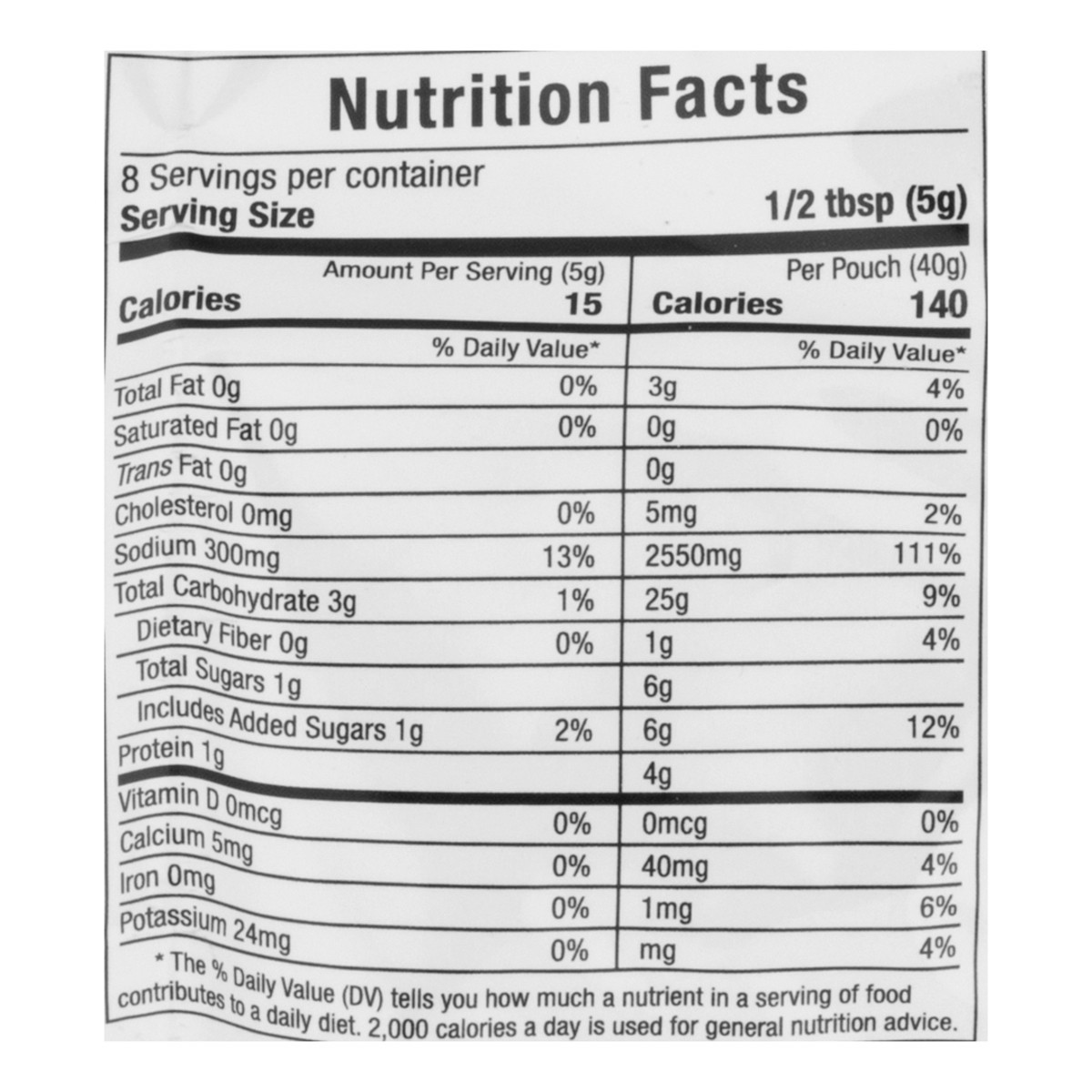 Ingredient Statement Apple Cider Vinegar, Onion, Yeast Extract, Sugar, Salt, Garlic, Chicken Powder and Chicken Fat, Vegetable Oil, Spices, Less than 2% of Smoke Flavor, Natural Flavor, Whey Powder.