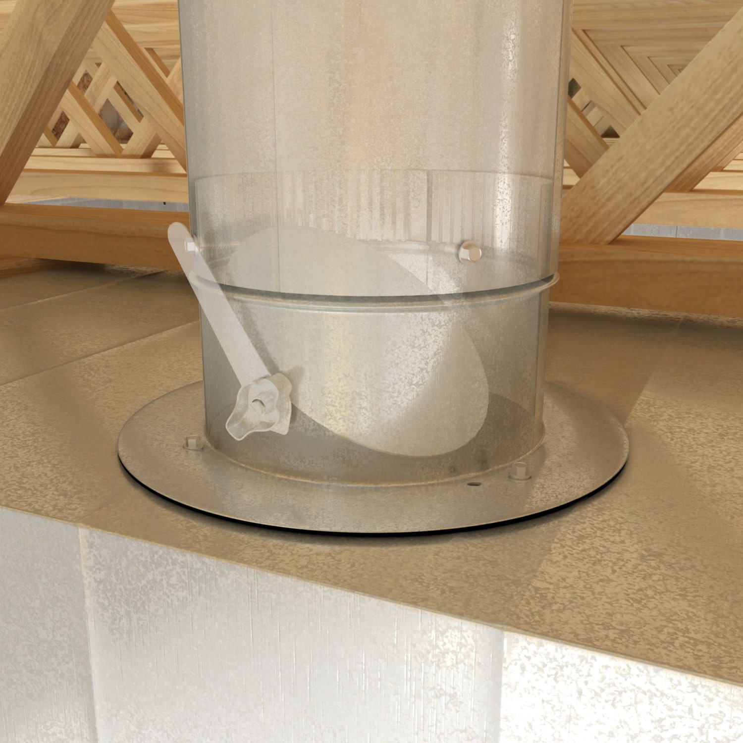 Used to transition from a rectangular duct or a plenum to round pipe or insulated flexible duct. Routes air from any side of the plenum or a rectangular duct run. Peel-and-stick self-adhesive gasket h…