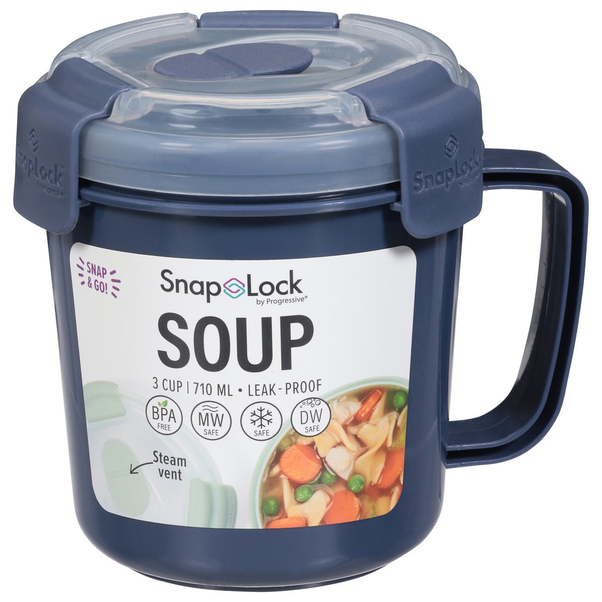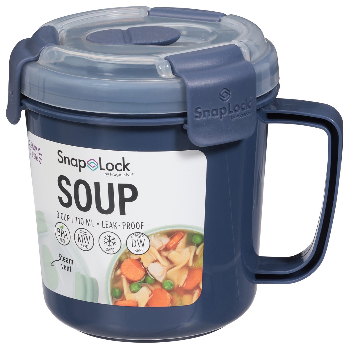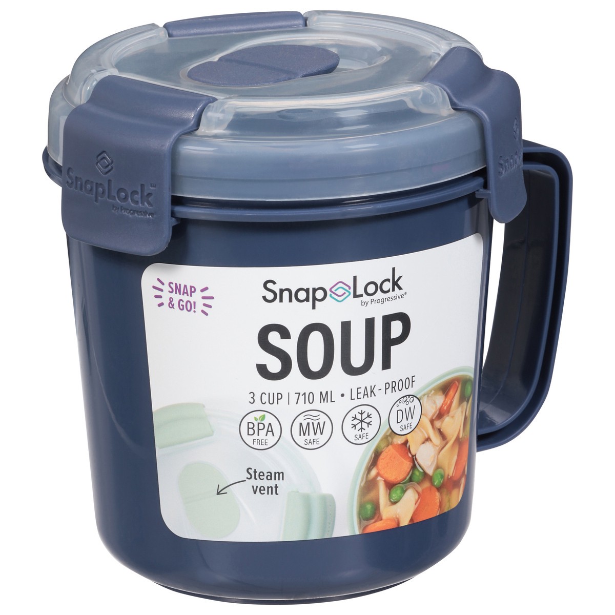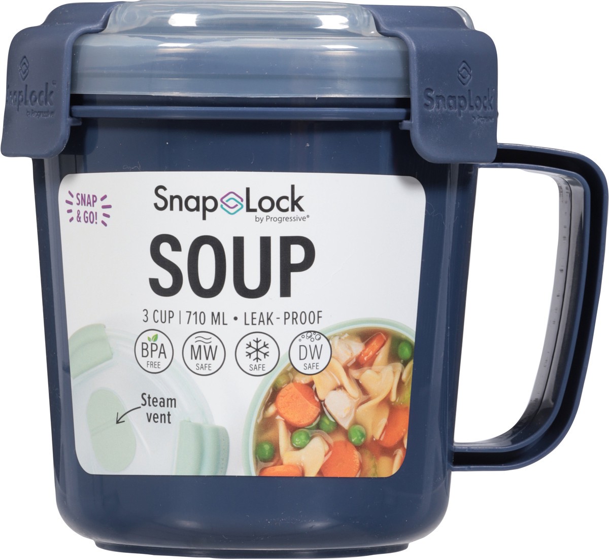 Soup lunches are easy with the customized heat vent and cool touch handle Vented lid and cool touch handle Leak-proof silicone seal with unique snap-hinge lid