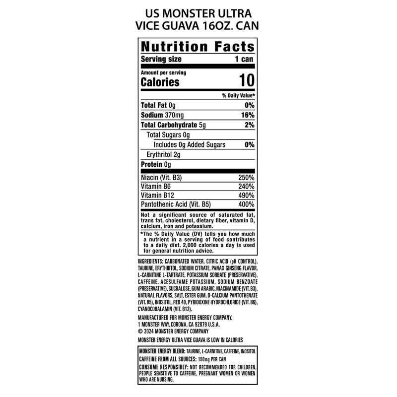 - UNLEASH THE ULTRA BEAST ENERGY DRINK: With zero sugar to weigh you down, the fresh taste of perfectly ripened guava, and our world-famous Monster Energy blend, Ultra Vice Guava Energy Drink has you covered.