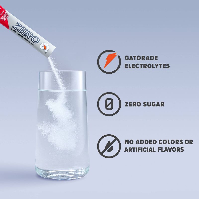 - BACKED BY SCIENCE: Zero Sugar Gatorade Electrolyte Drink Mix is Backed by the Gatorade Sports Science Institute .