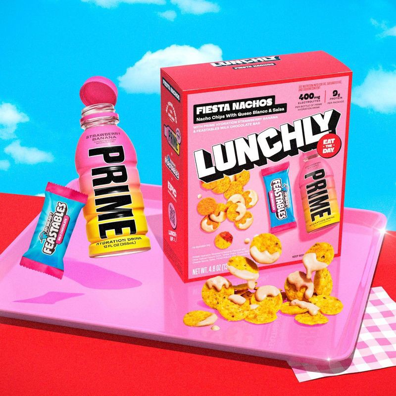 - Includes a refreshing Prime Hydration Strawberry Banana sports drink and rich Feastables Milk Chocolate Bar for a flavorful, kid-approved meal