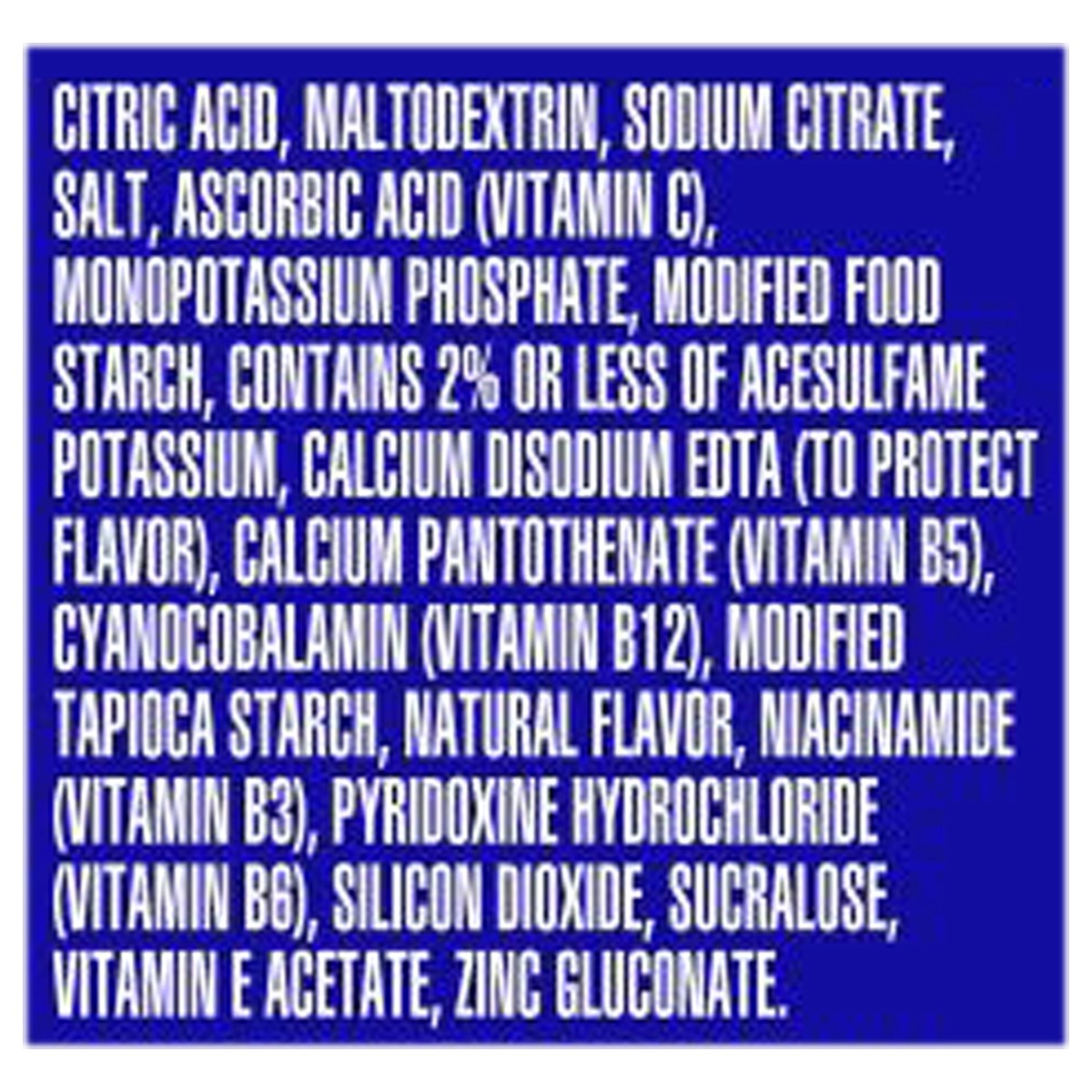 Citric Acid, Maltodextrin, Sodium Citrate, Salt, Ascorbic Acid (Vitamin C), Monopotassium Phosphate, Modified Food Starch, Contains 2% or Less of Acesulfame Potassium, Calcium Disodium EDTA (to Protec…