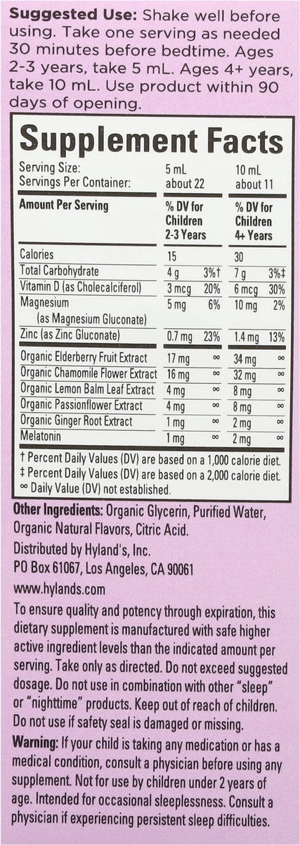 Hyland's Naturals Sugar-Free Kids Organic Grape Flavor Sleep with Melatonin - 4 fl oz