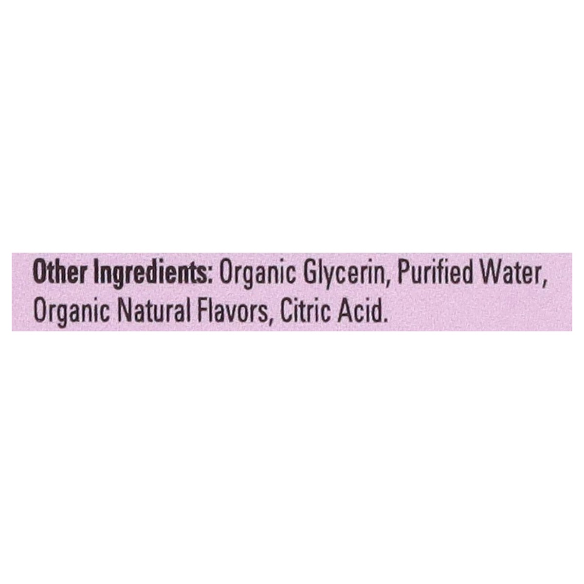 Other Ingredients: Organic Glycerin, Purified Water, Organic Natural Flavors, Citric Acid.