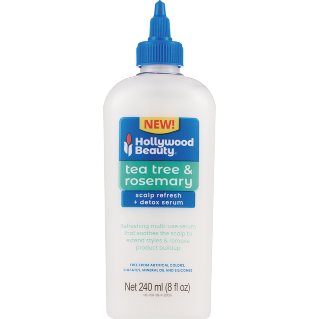 Hollywood Beauty Tea Tree & Rosemary Scalp Refresh + Detox Serum refreshes your scalp between protective styles and deeply removes build-up before shampooing. This multi-use serum is infused with Tea …