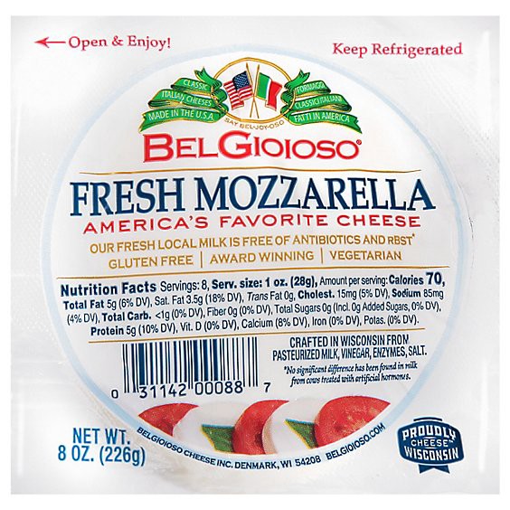 Made from fresh, local milk gathered only a few hours after milking, BelGioioso Fresh Mozzarella begins with quality ingredients and care. The result is a delicate, clean-flavored Fresh Mozzarella wit…