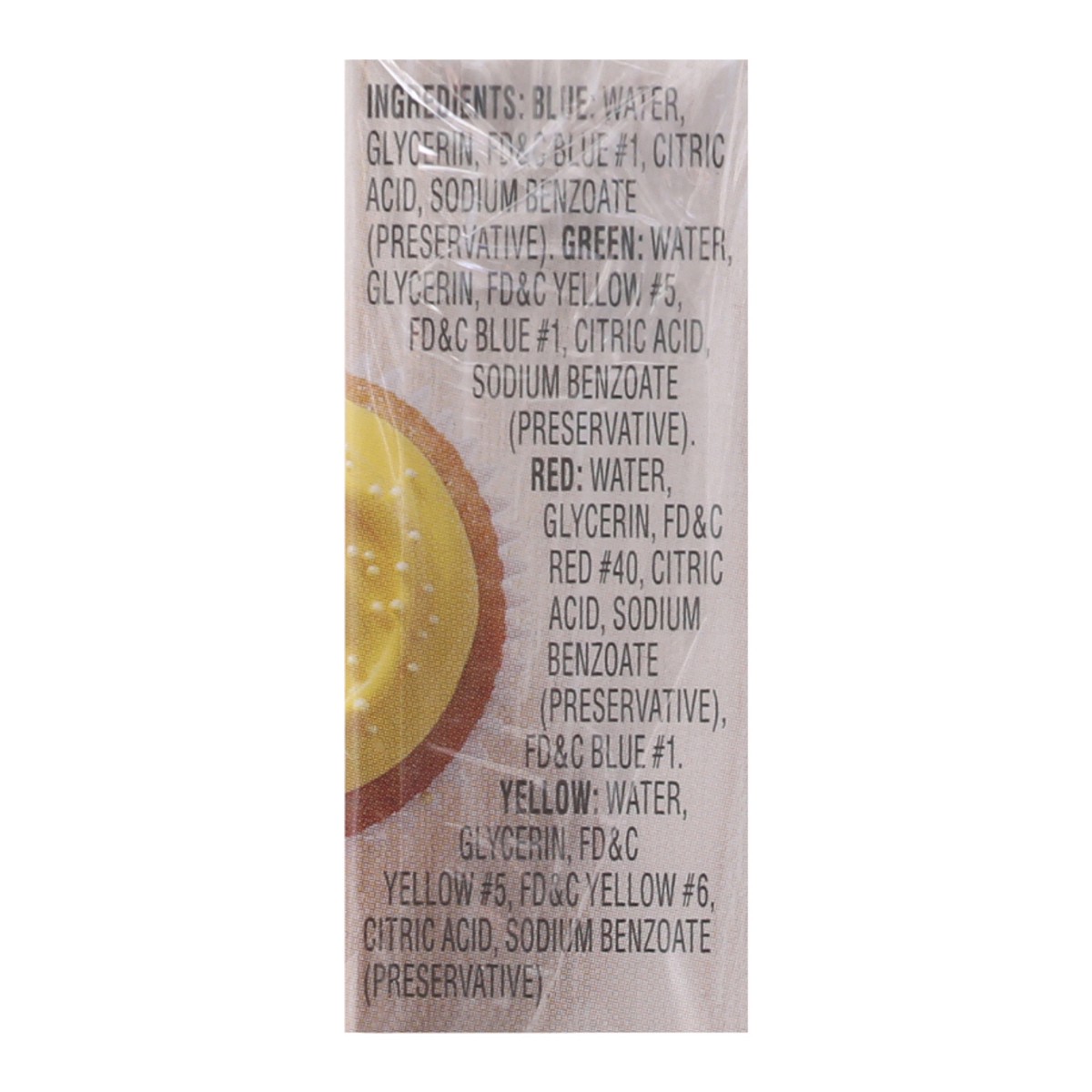 Blue: Water, Glycerin, FD&C Blue 1, Citric Acid, Sodium Benzoate (Preservative). Green: Water, Glycerin, FD&C Yellow 5, FD&C Blue 1, Citric Acid, Sodium Benzoate (Preservative). Red: Water, Glycerin, …