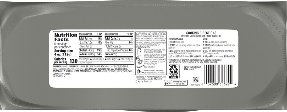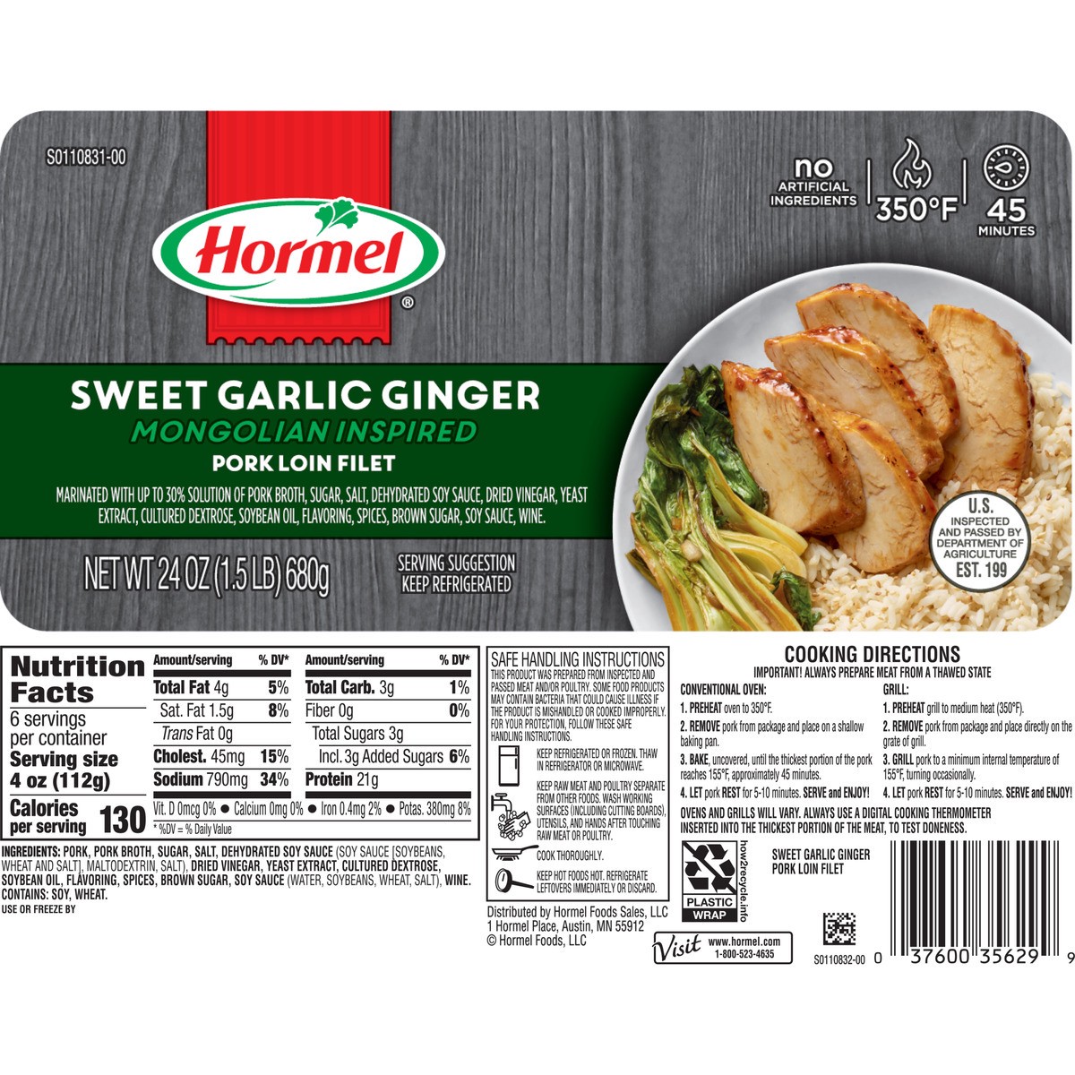 - Includes one 24 oz package of HORMEL Sweet Garlic Ginger Pork Loin Filet