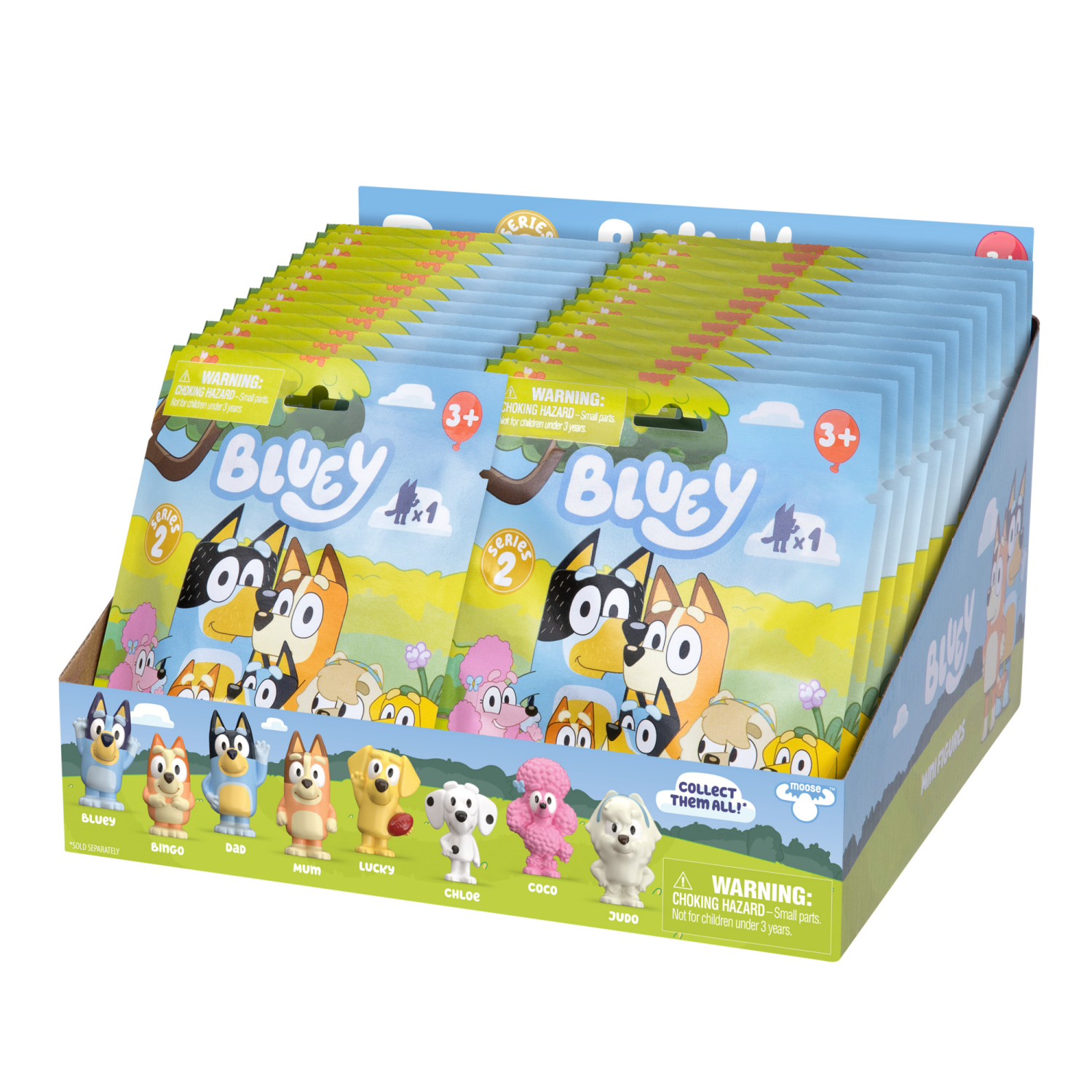 Bring home the fun and imaginative play of Bluey with the new Bluey Mini Figures! Each single pack contains one Mini Figure in a new, collectible 1" size. There are 8 different Bluey figures to collec…