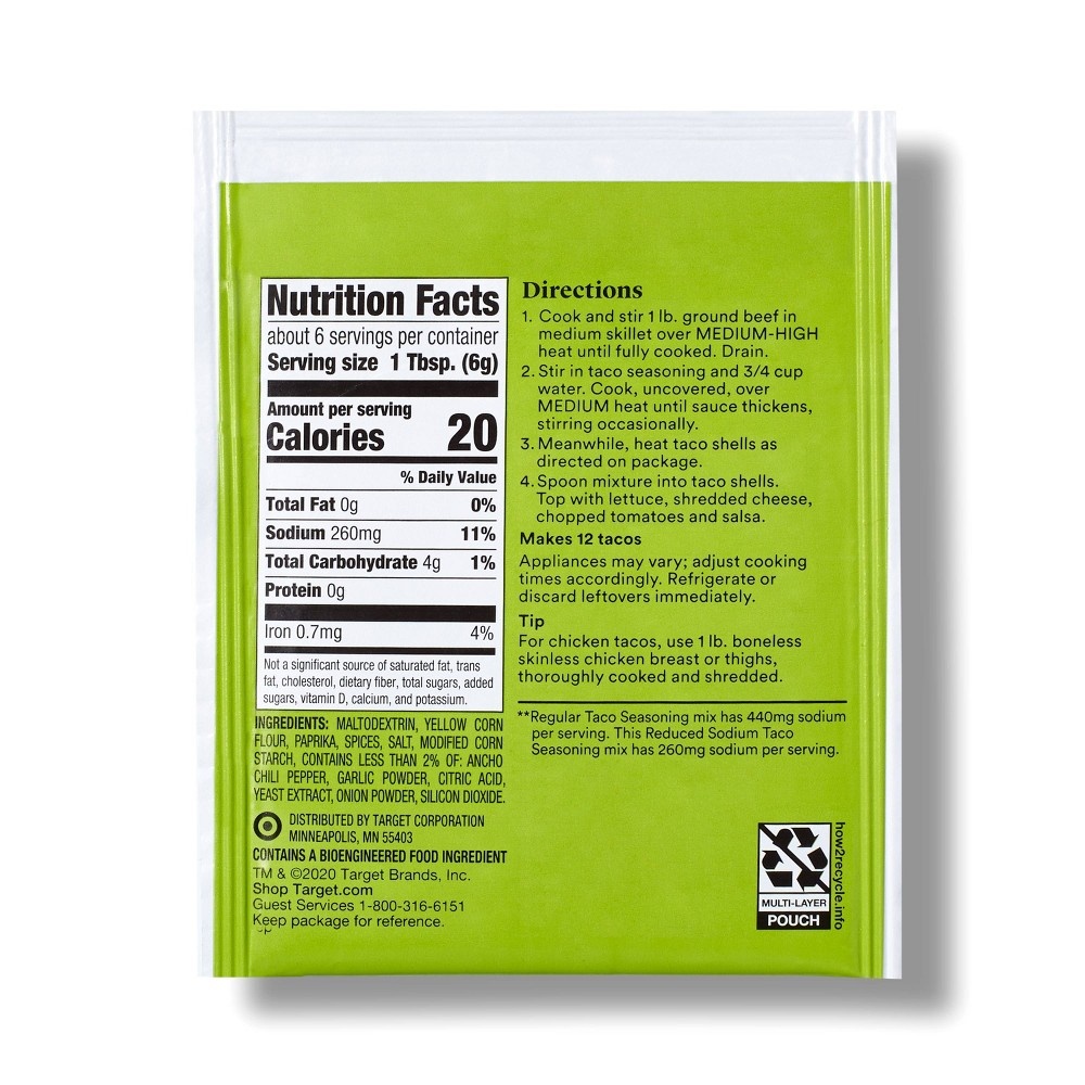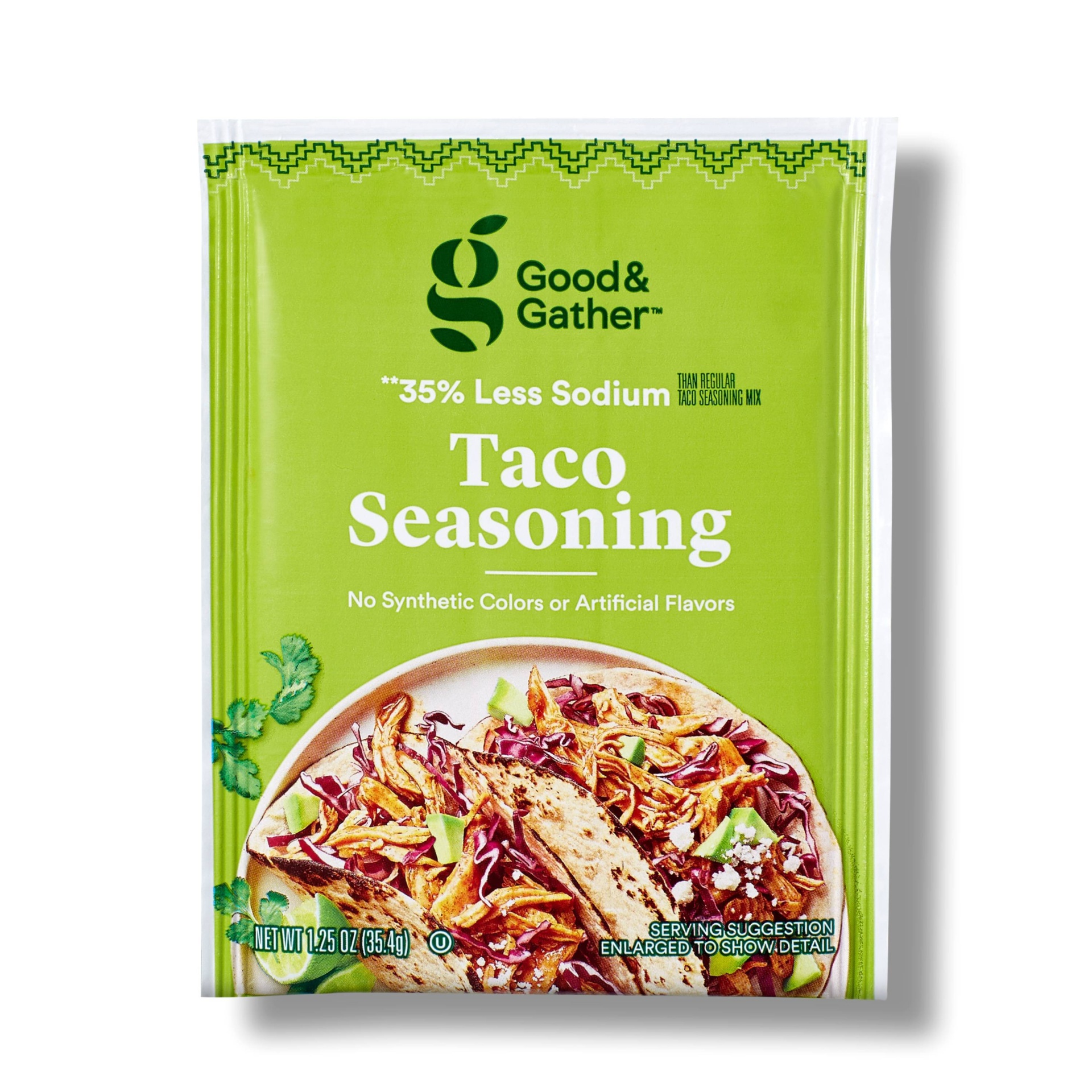 Bring additional flavor to tacos, burritos and dips with this Reduced Sodium Taco Seasoning from Good & Gather. Perfect for adding savory flavor to shredded beef, pork, chicken, beans and more, this t…