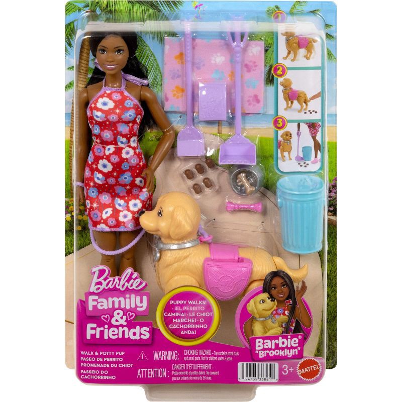 Barbie “Brooklyn” Walk & Potty Pup Toy Set, Includes Doll, Walking Dog with Potty Feature, & Pet Accessories
