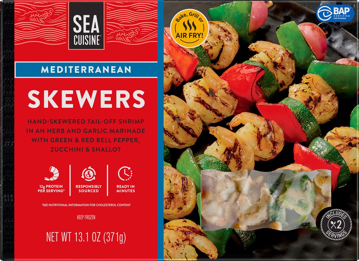 Sea Cuisine''s chefs did the work so you can make delicious seafood easily at home. Sea Cuisine Mediterranean Shrimp Skewers feature four perfectly marinated tail-off shrimp skewers in an herb & garli…