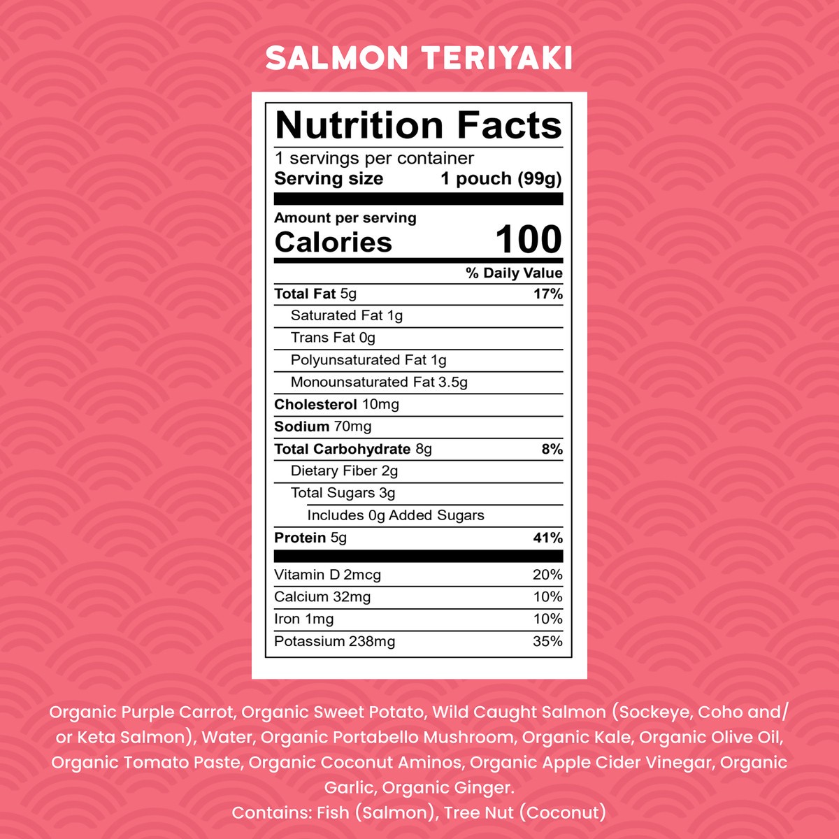 Contains: fish (salmon), tree nut (coconut).