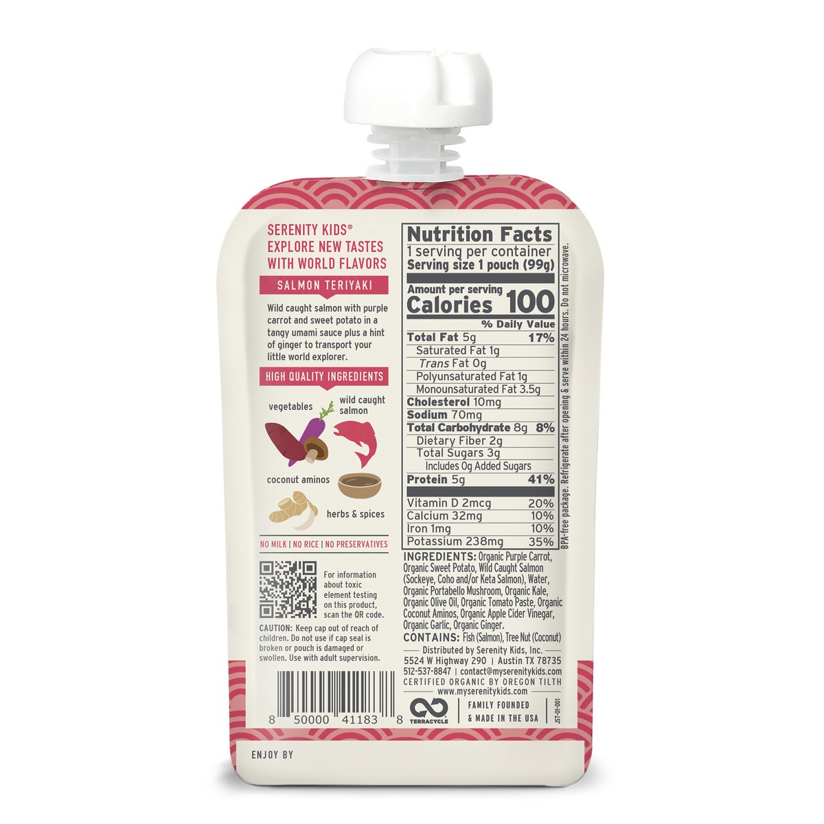 Serenity Kids Salmon Teriyaki with Organic Vegetables Pouch, 3.5oz
