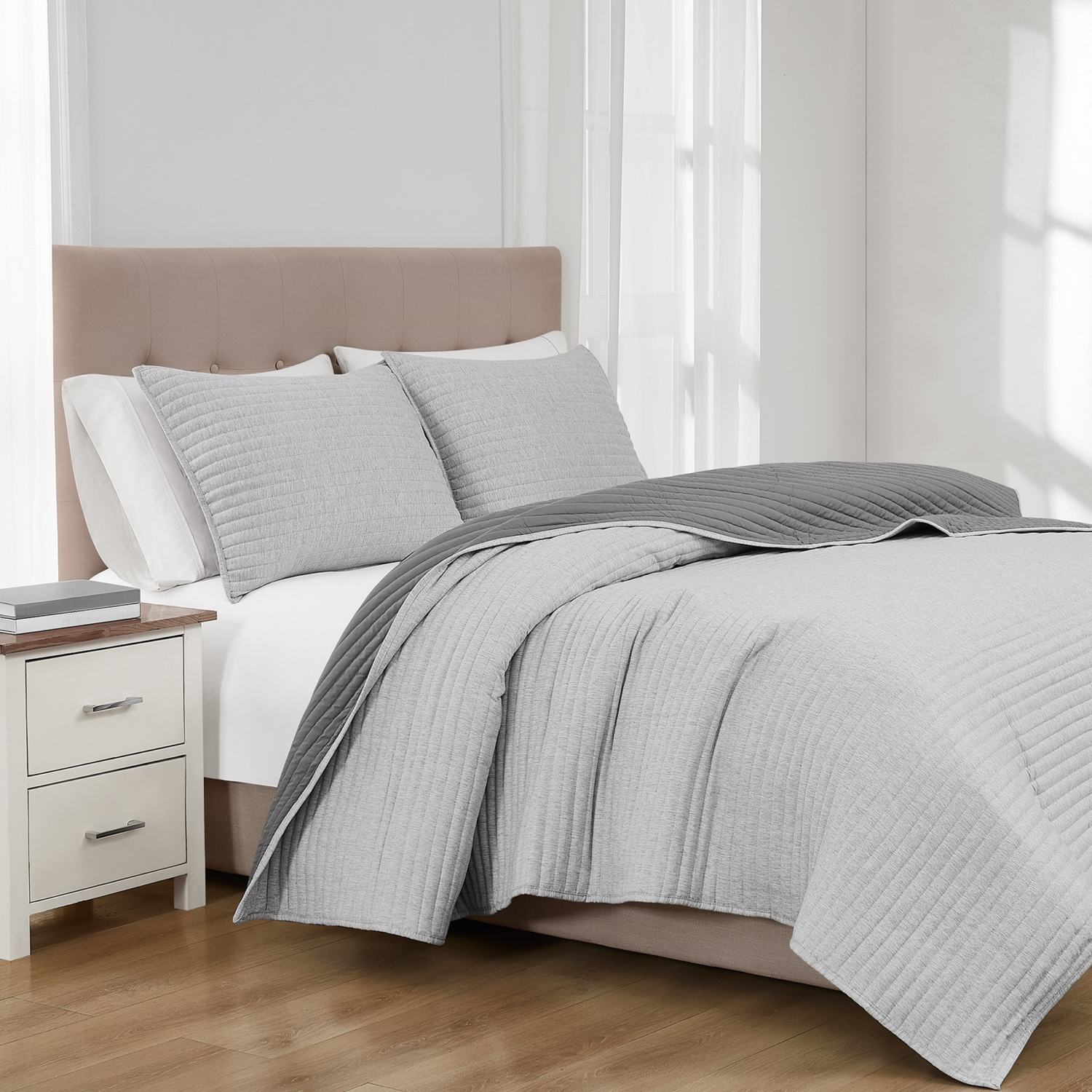 Room & Retreat Heathered 3 Piece Quilt Set, Full / Queen, Lt. Gray
