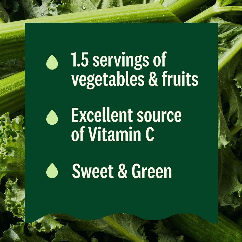 - DRINK YOUR VEGETABLES: With 1.5 servings of fruits and vegetables per bottle and no added sugar, this green juice is perfect to load up on greens