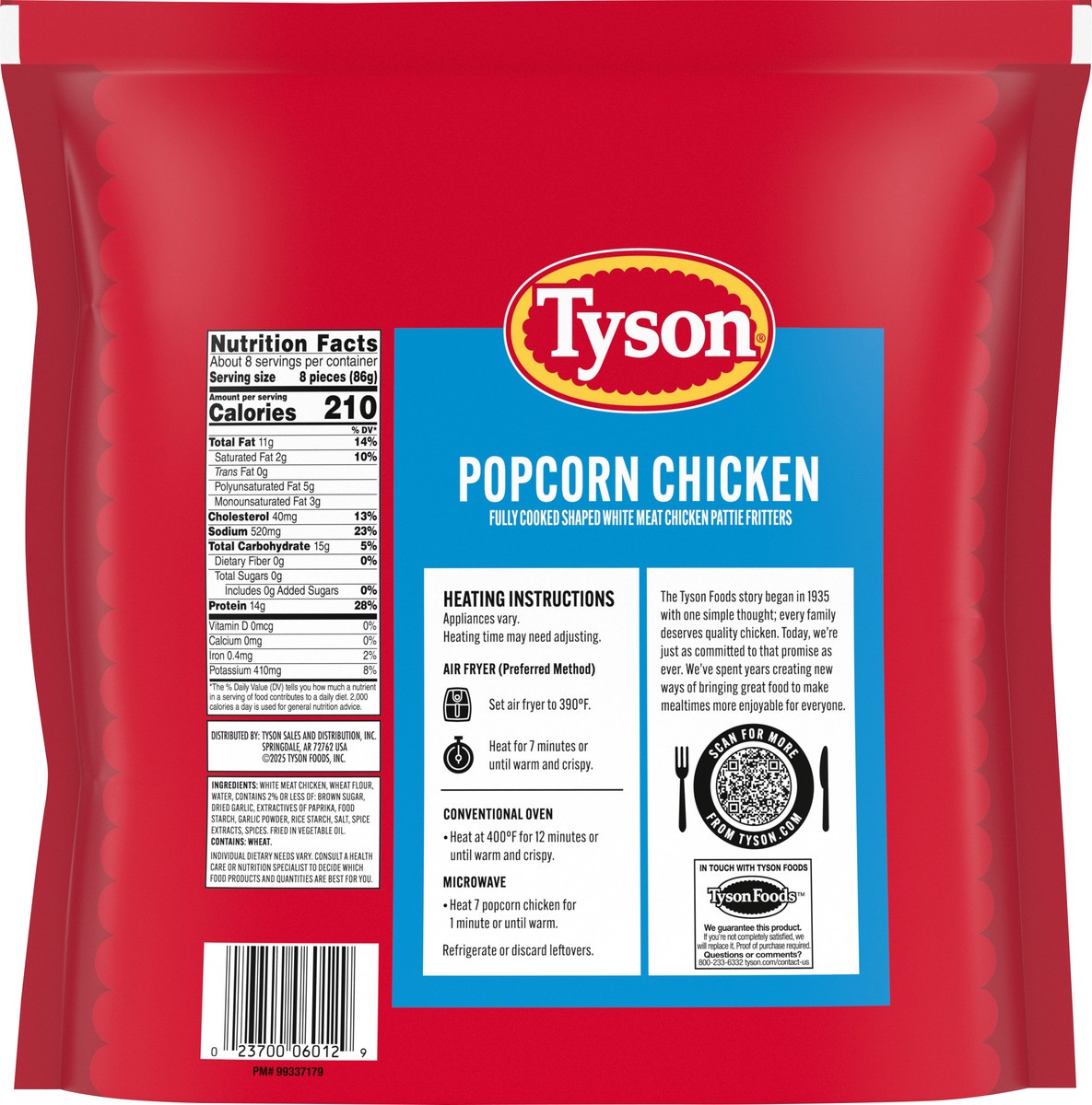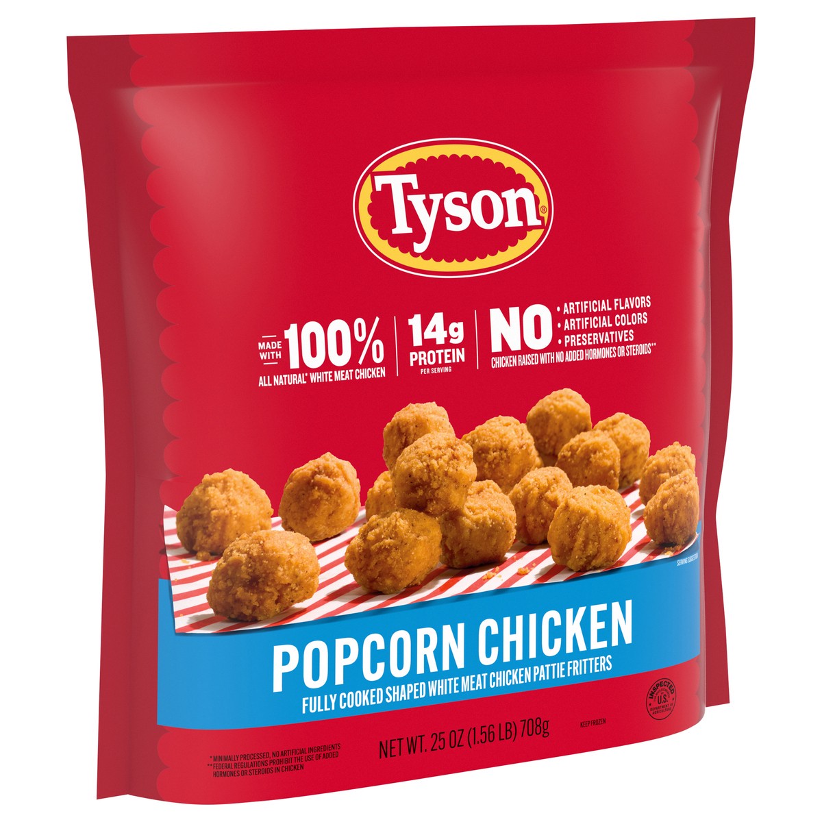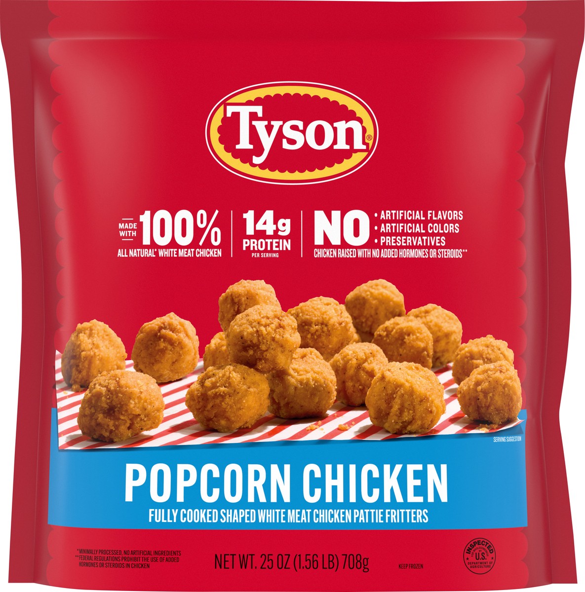 Tyson Frozen Popcorn Chicken are fully cooked and made with 100% all natural* white meat chicken with no added hormones or steroids**, our popcorn chicken is easy to prepare and fun to eat. Bite-sized…
