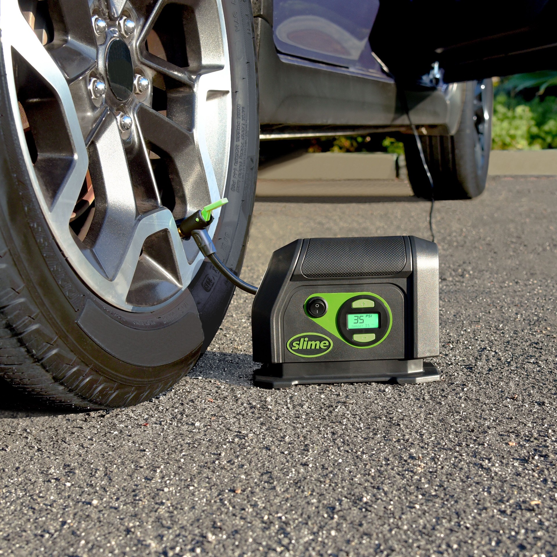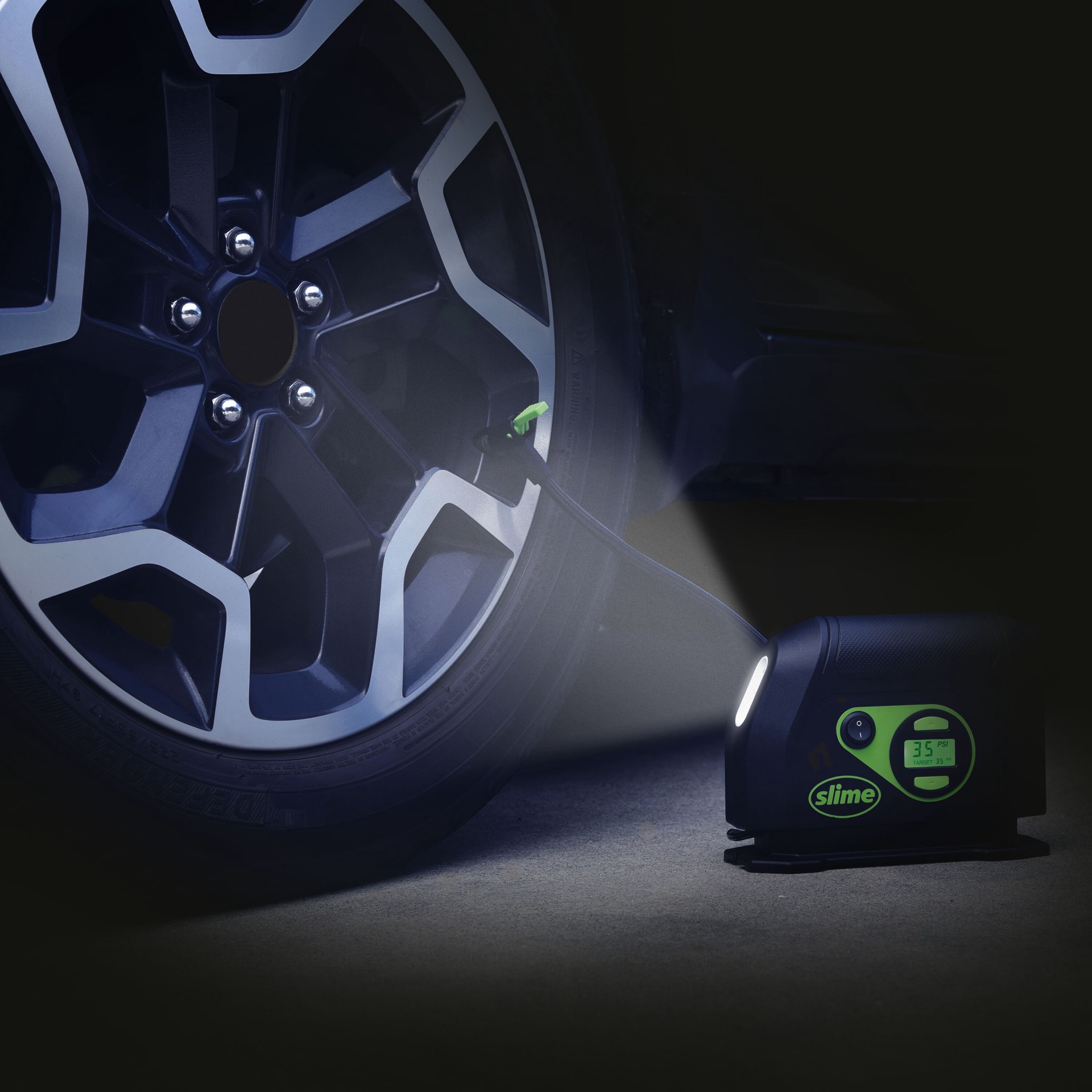 Inflates a standard mid-sized car tire in 6 minutes. 12-volt accessory power with bright and long-lasting LED light for easy night use. Easy to read digital display, 0-99 psi. Uses Inflate-Right Techn…