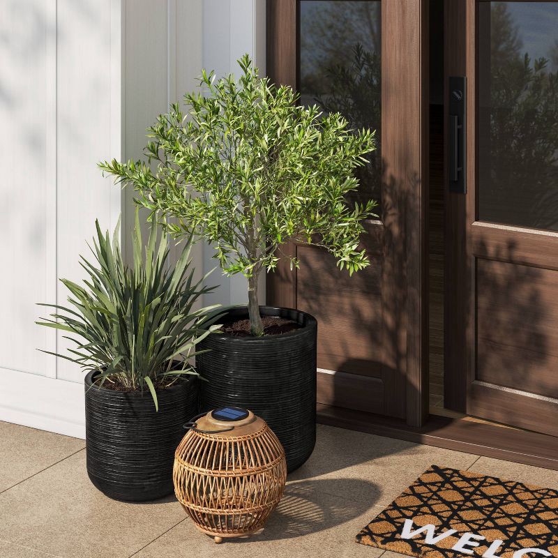 Fluted Outdoor Planter Black 14"x16" - Threshold™