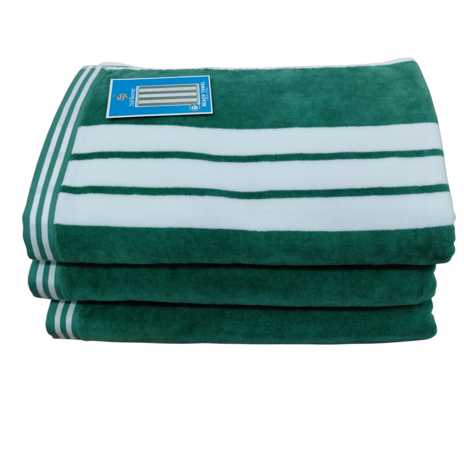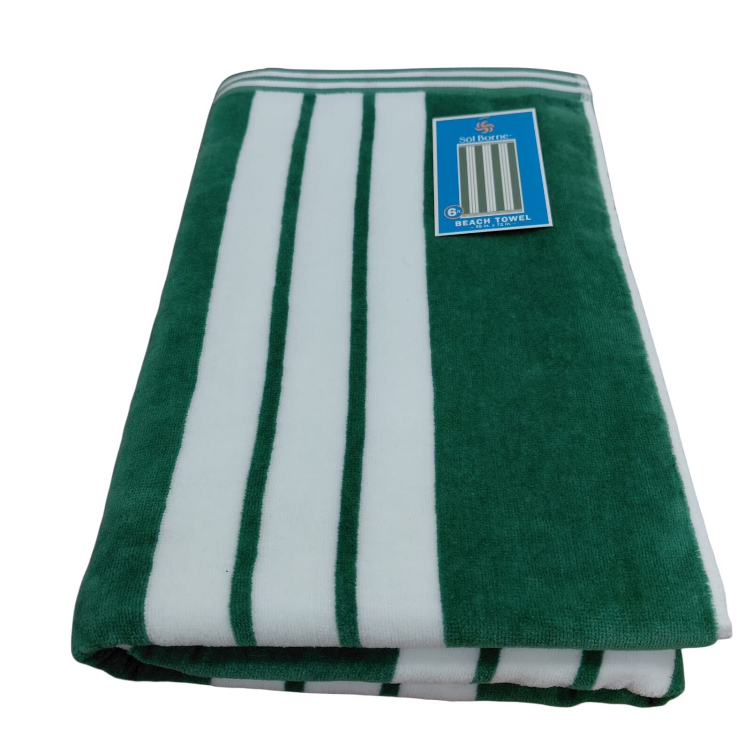 Sol Borne Jacq Towel Green White Stripe 36 in x 72 in