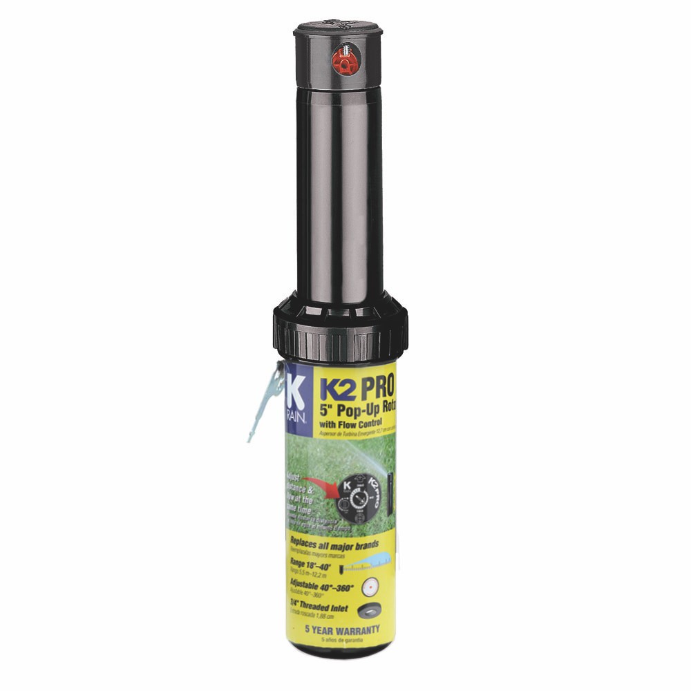 5-In pop up height. Distance 18-ft to 40-ft. Distance and flow control allows you to adjust your distance and water flow simultaneously - conserving water. Patented top arc set allows for easy pattern…