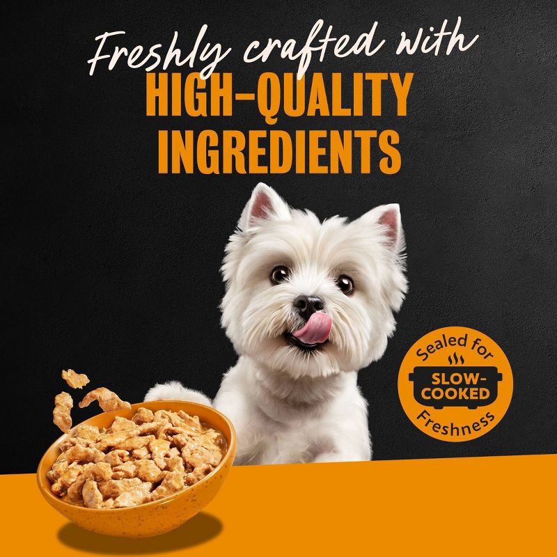 - Savory Flavor: This single-serve wet dog food is slow-cooked for a juicy, tender texture that dogs love.