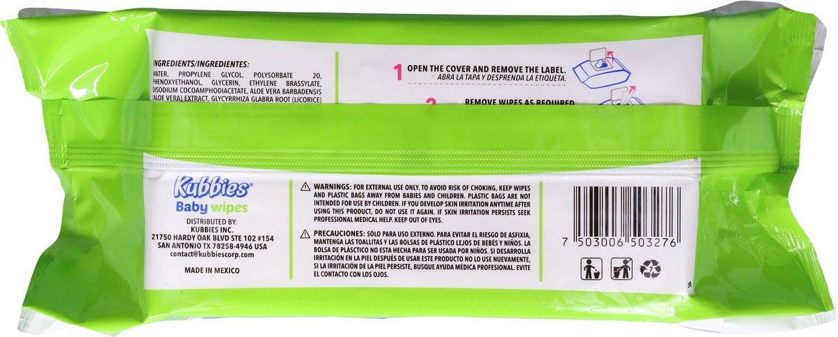 Kubbies Baby Wipes Alcohol free Aloe Vera extract No parabens 7 in. X 7.8 in.