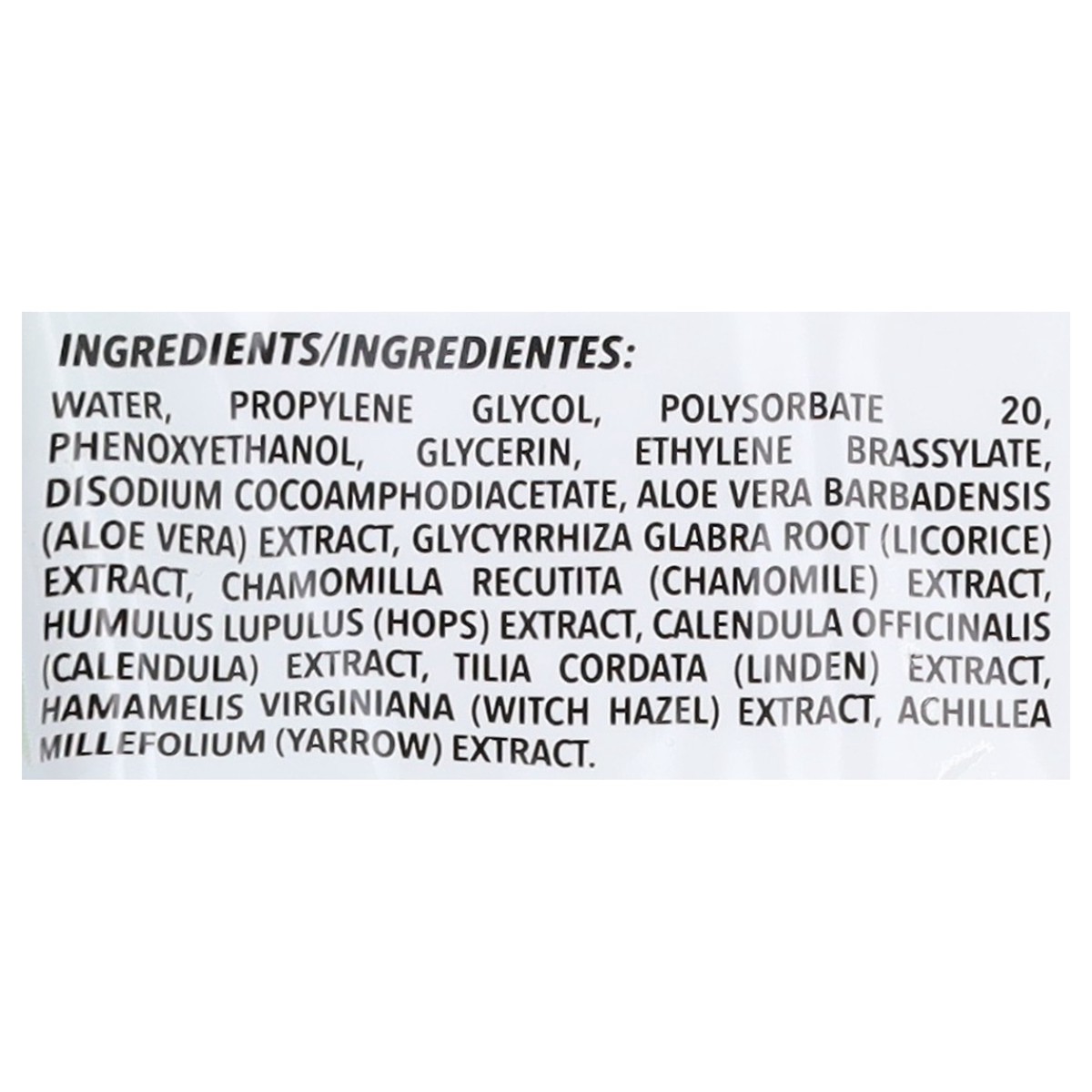 Water, Propylene Glycol, Polysorbate 20, Phenoxyethanol, Glycerin, Ethylene Brassylate, Disodium Cocoamphodiacetate, Aloe Vera Barbadensis (Aloe Vera) Extract, Glycyrrhiza Glabra Root (Licorice) Extra…