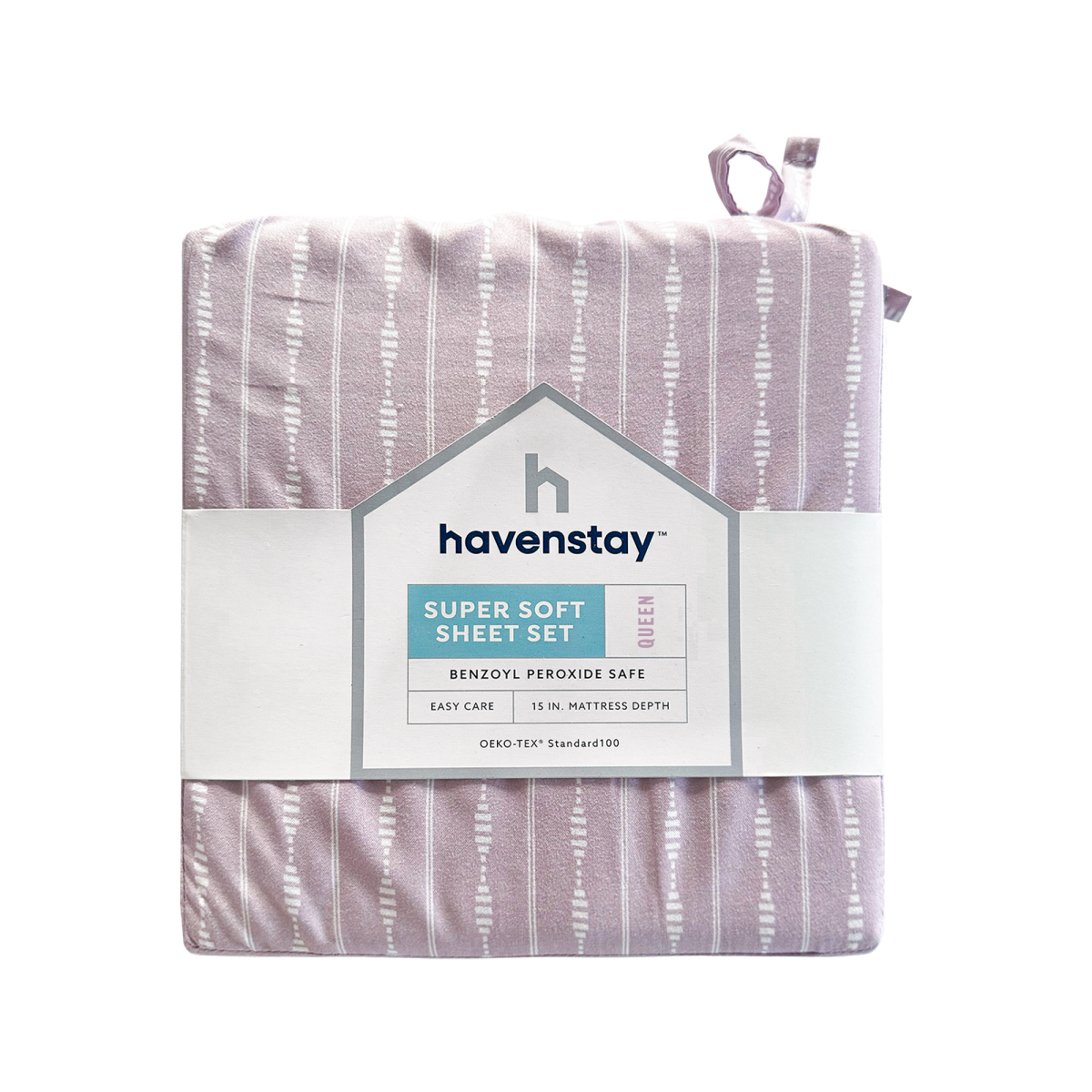 Havenstay Sheets, Queen, Lavender Dotted Stripe