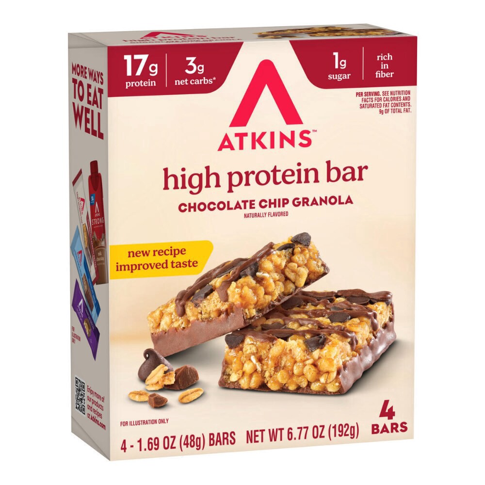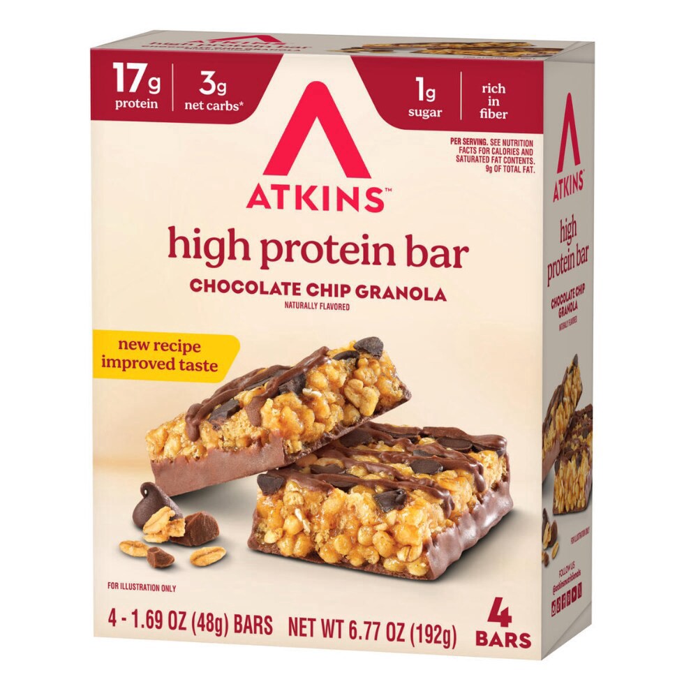 PROTEIN-POWERED SATISFACTION. Atkins Chocolate Chip Granola Flavored High Protein Bars feature the chocolatey chip taste and granola texture that keeps you coming back for more. SUPPORT & NOURISHMENT.…