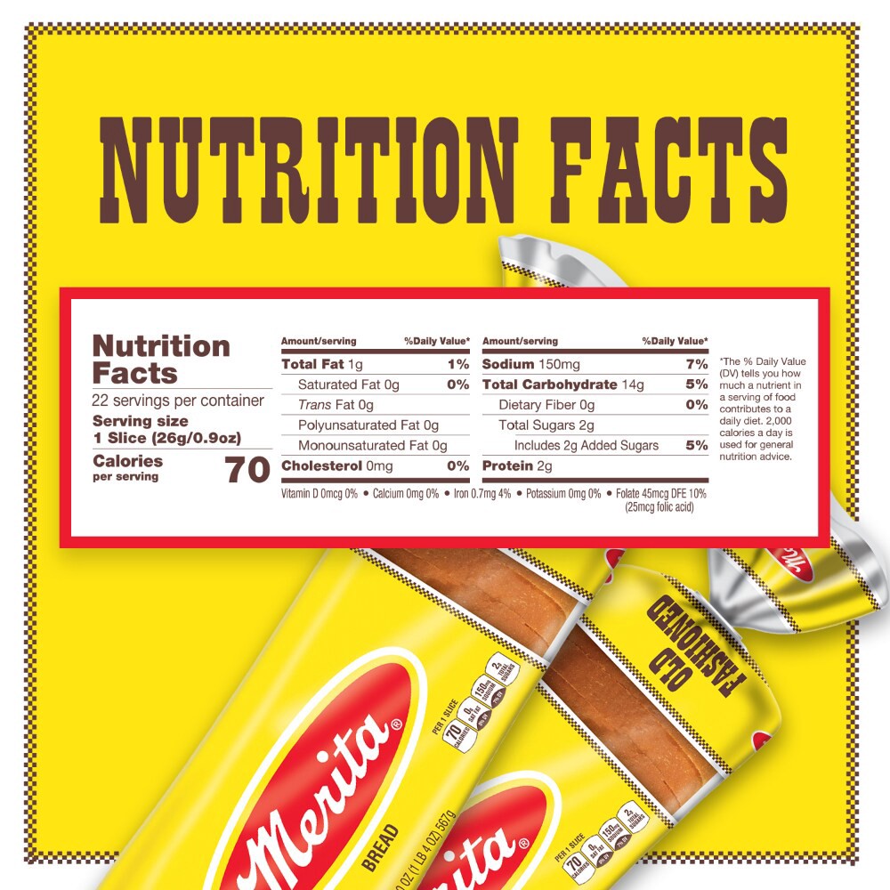 - Each slice of Merita Old Fashioned Bread is baked soft using the finest ingredients from a rich, old fashioned recipe