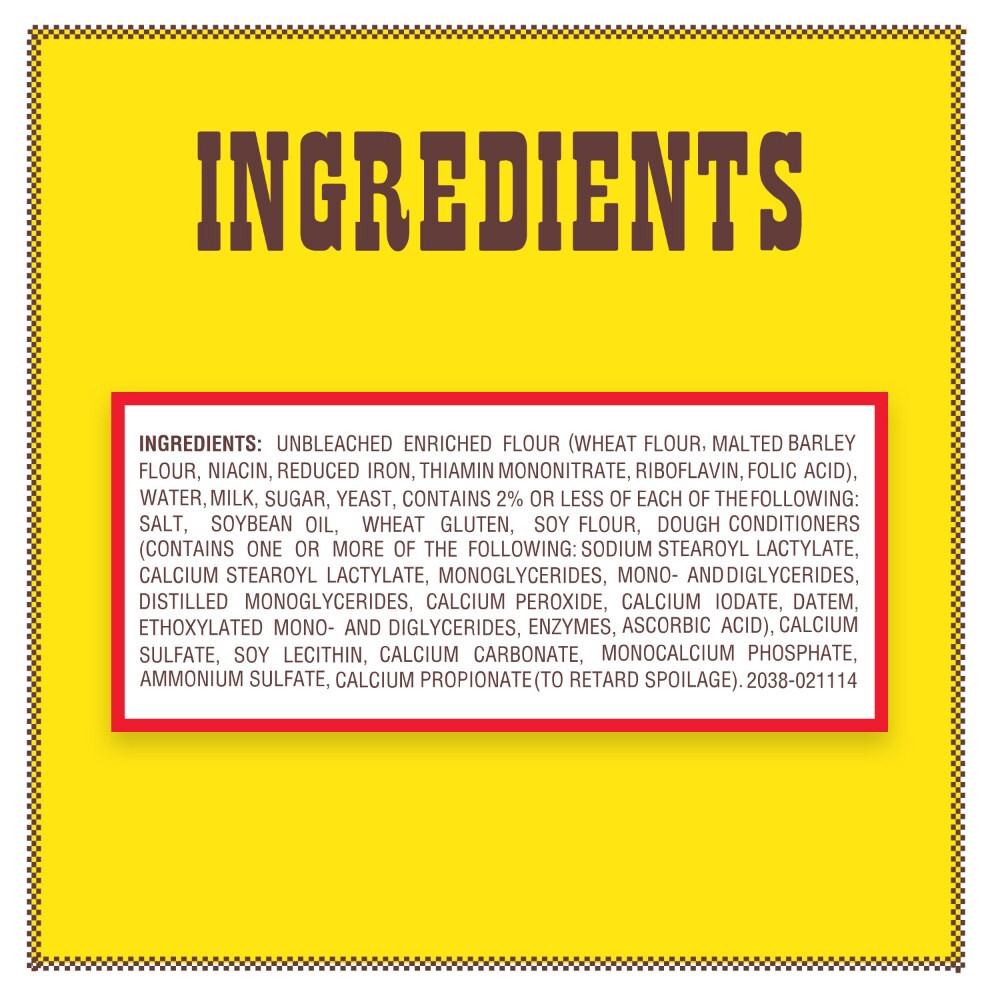 Unbleached Enriched Flour (Wheat Flour, Malted Barley Flour, Niacin, Reduced Iron, Thiamin Mononitrate, Riboflavin, Folic Acid), Water, Milk, Sugar, Yeast, Contains 2% or Less of Each of the Following…