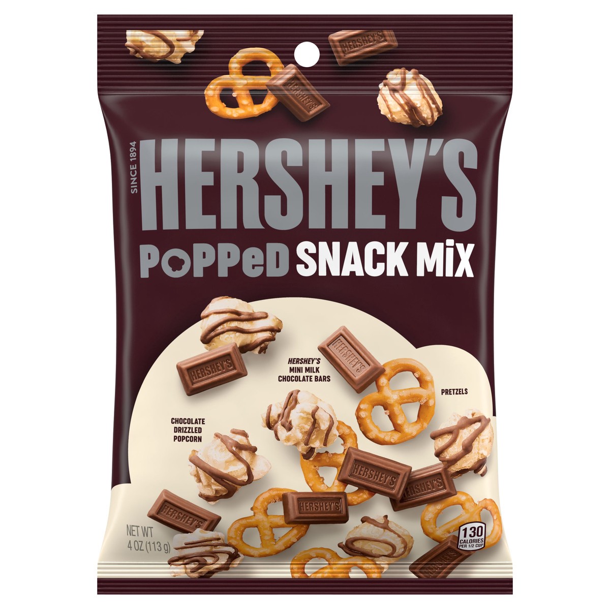 Snacking just got better! A fun and tasty combination of sweet and salty, HERSHEY''S Mini Milk Chocolate Bars mixed with mini pretzels and chocolate-drizzled popcorn make for bite after bite of delici…