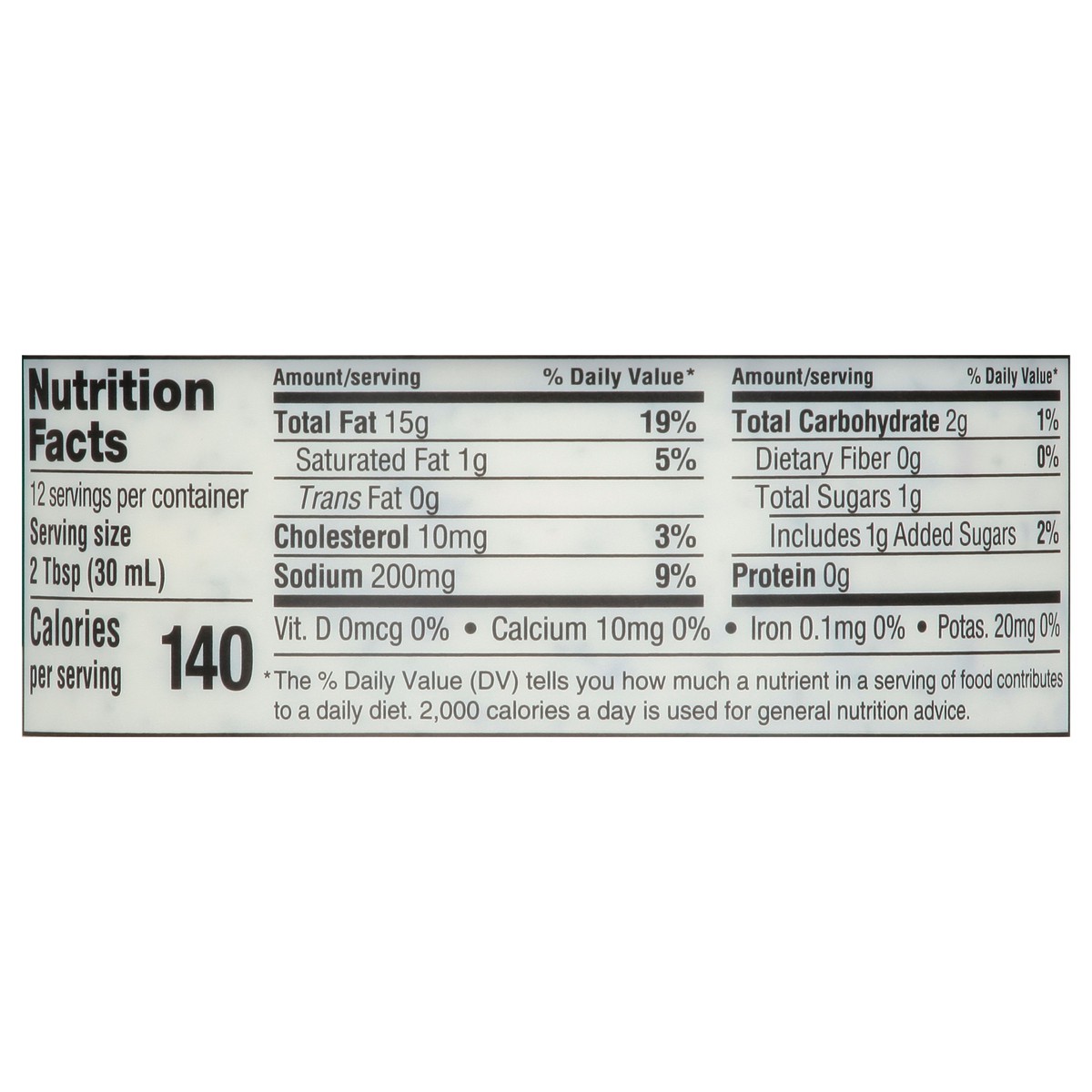 Canola Oil, Nonfat Sour Cream (Cultured Skim Milk, Corn Starch, Tapioca Starch, Carrageenan, Locust Bean Gum), Water, Egg Yolk, Sugar, Less than 2% of Dill Weed, Dill Seed, Distilled Vinegar, Salt, Gr…