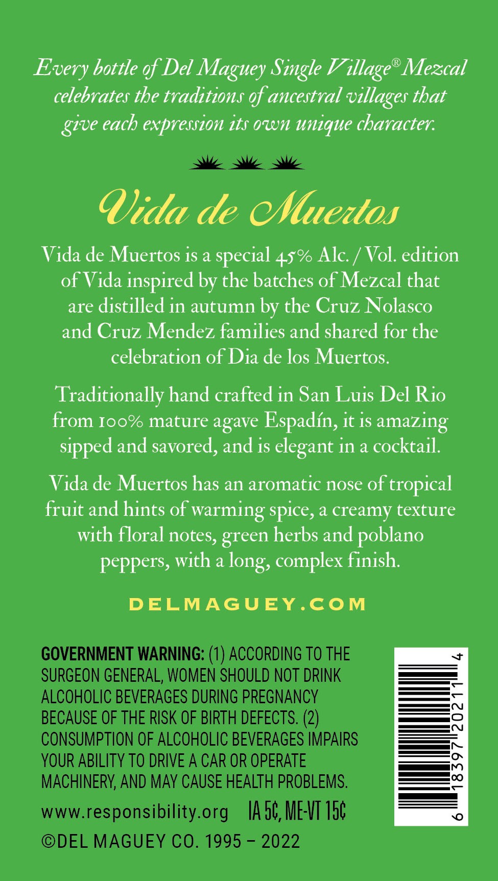 Made by Paciano Cruz Nolasco in San Luis del Rio, the story of VIDA is continued by Vida de Muertos, a 45% edition inspired by the mezcal he makes for Día de Los Muertos. Vida de Muertos is a permanen…