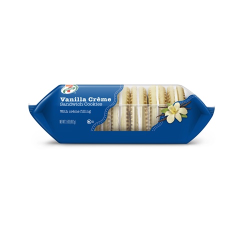Two delicious vanilla cookies joined together by sweet crème filling