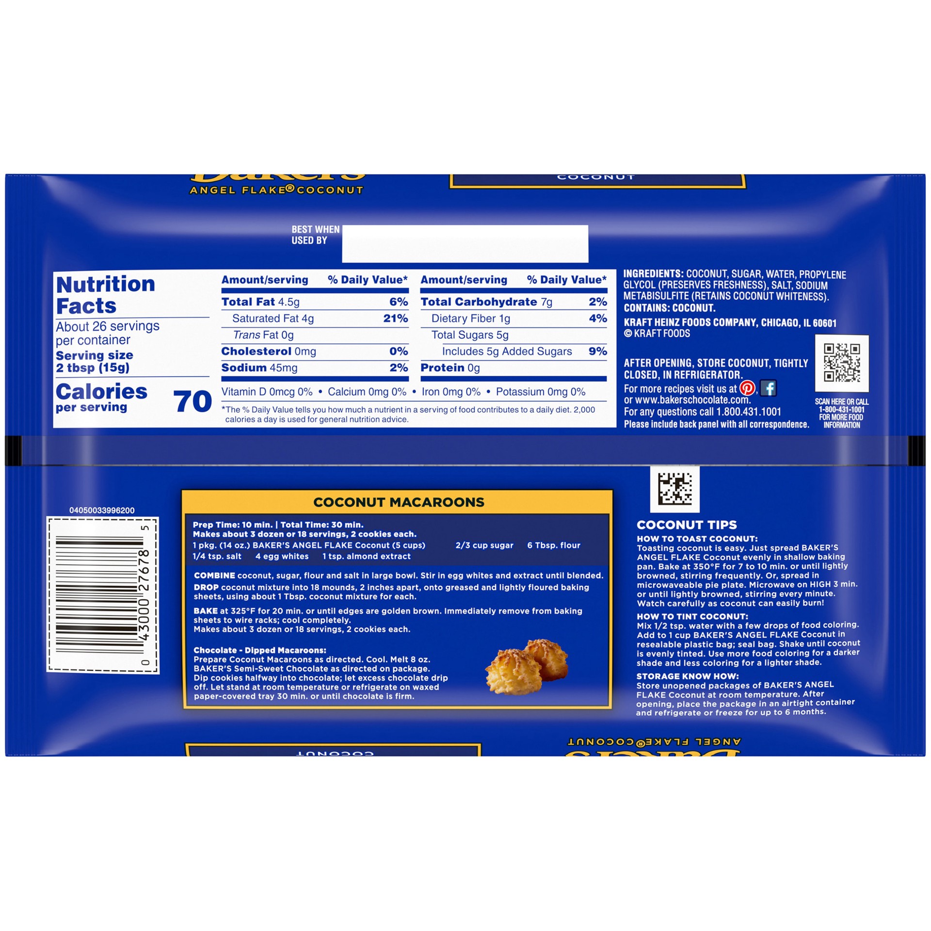 Baker's Sweetened Coconut Angel Flake Coconut is a delicious ingredient for all your baking needs. A trusted kitchen staple since 1780, Baker's shaved coconut is perfectly sweetened to match your favo…