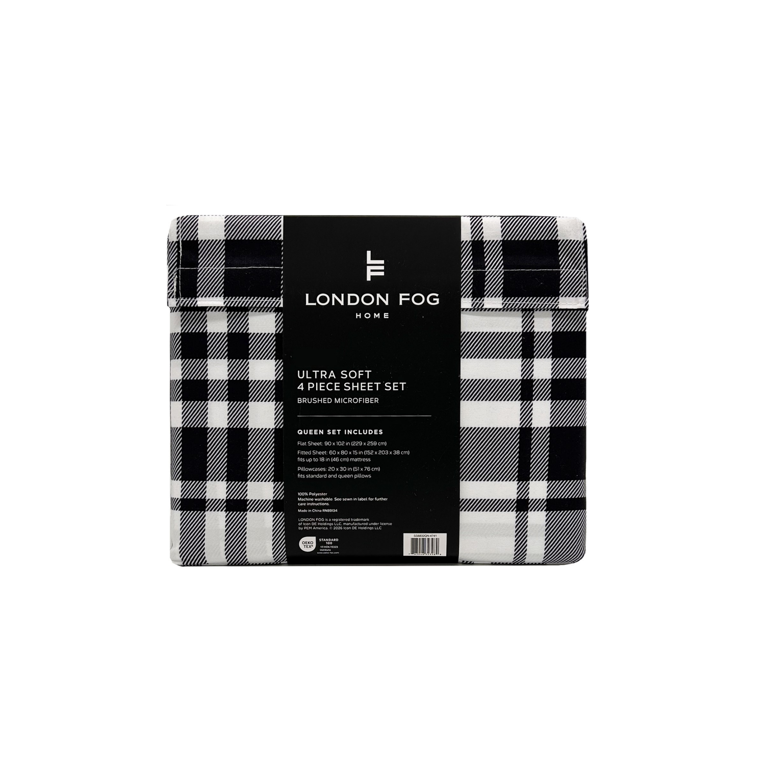 London Fog Microfiber Sheet Set, Queen, Black Plaid