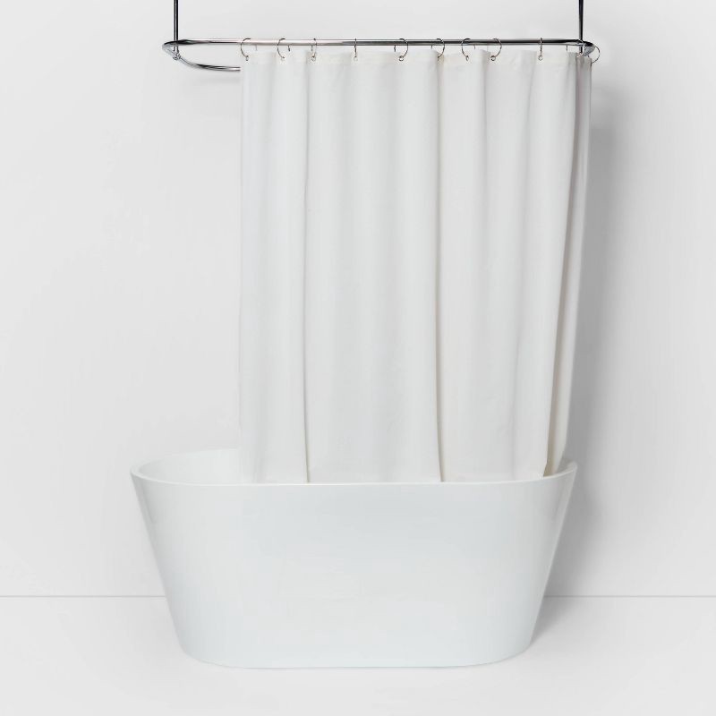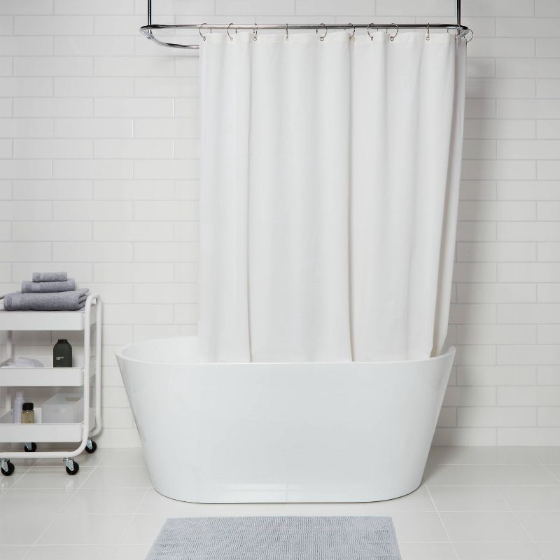 Protect your bathroom floors with the Basket-Weave Shower Curtain or Liner from Made By Design™. The waterproof fabric shower curtain is fully sealed to keep water inside your bathtub. Featuring the c…