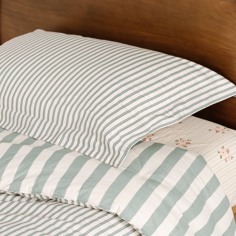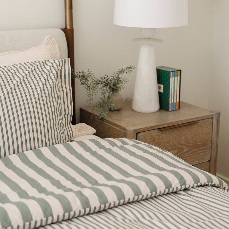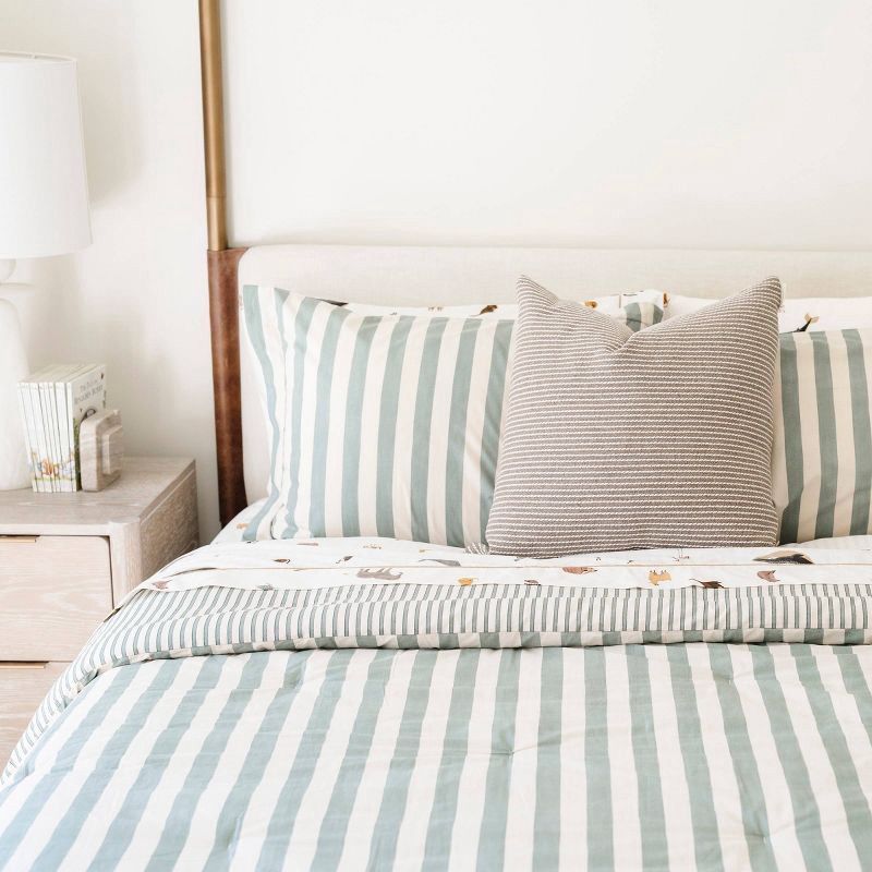 Gathre Green Stripe Reversible Comforter Set Full/Queen