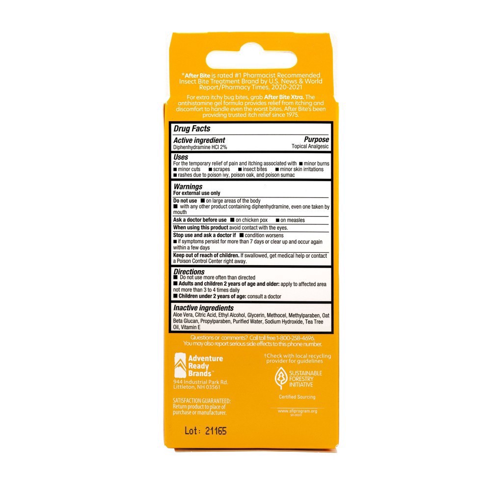 Misc: Instant itch relief. New & improved formula! Now with antihistamine. Be Ready for: bees & wasps; fire ants; jelly fish; mosquitoes; biting flies; other insects. After Bite Xtra is a powerful gel…